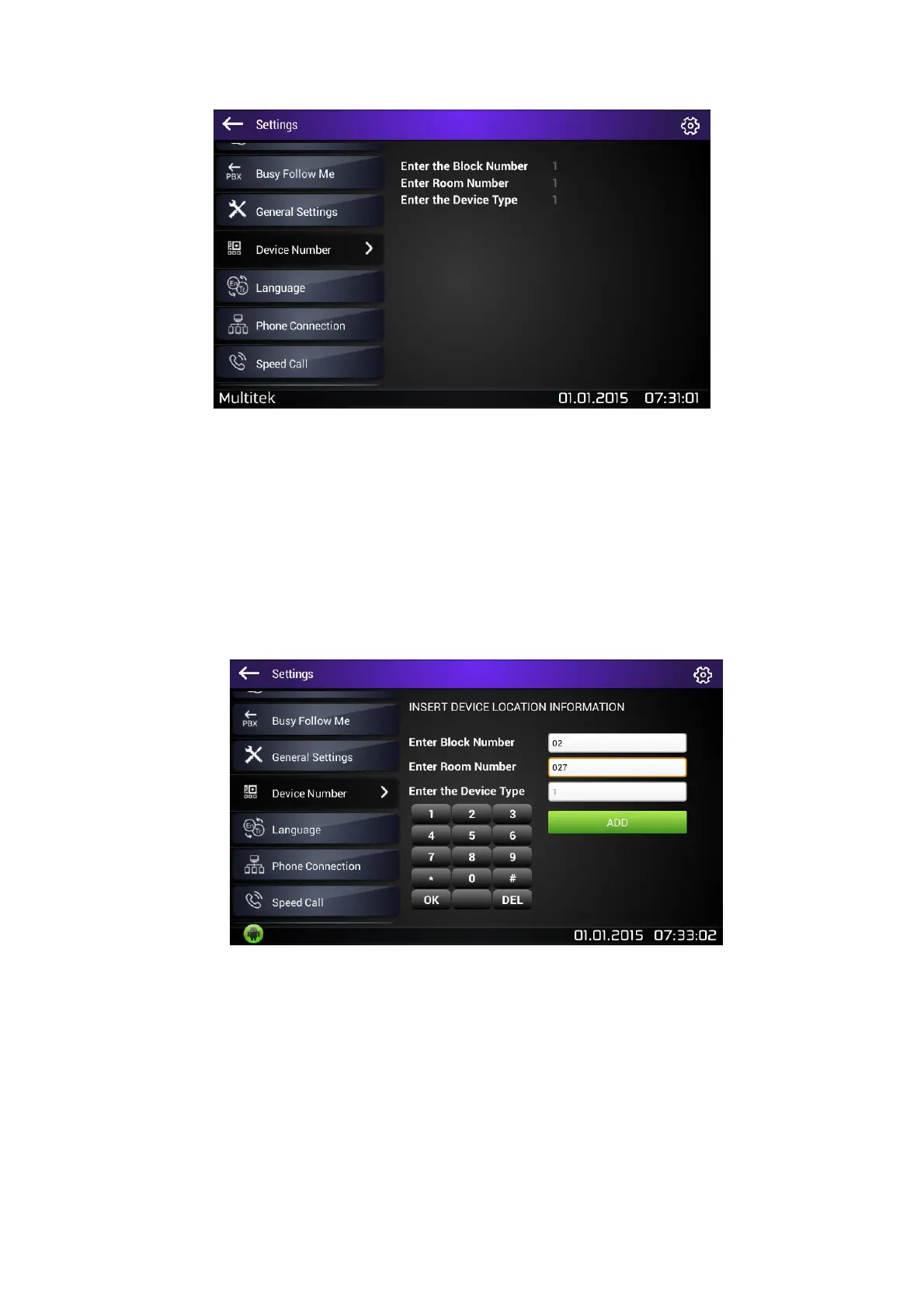 Press Volume - button then touch Device Number (flush mount monitors do not have this buttons)