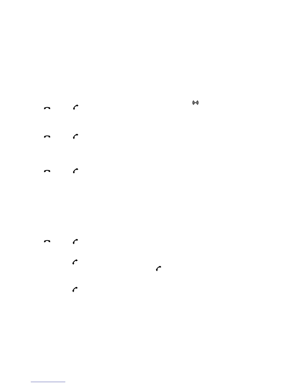 Dial the number of another handset on the base station, the -icon will flash until the connection is established
