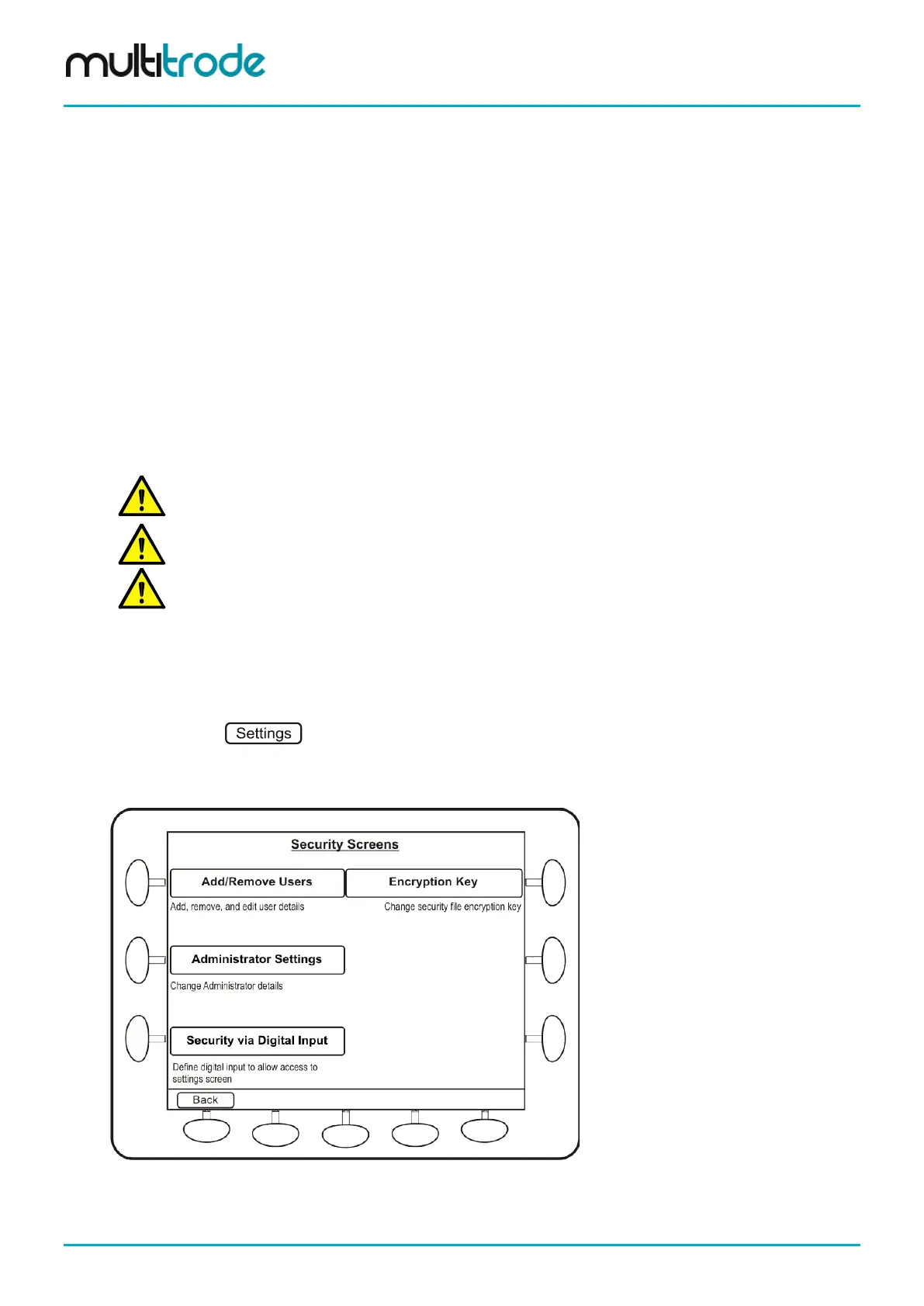 The MultiSmart restricts access to the configuration menus and other screens by creating users. MultiSmart
