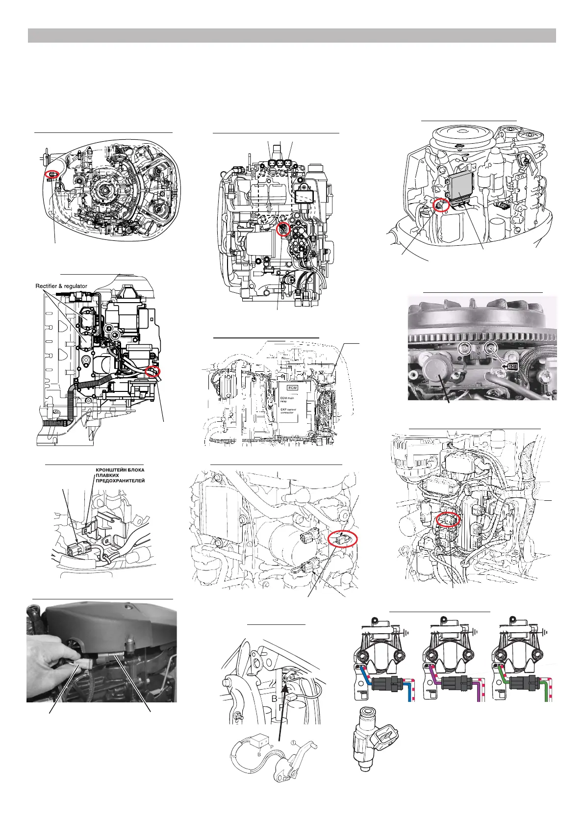 The schemes below show the locations of diagnostic connectors and sensors for some types of engines from various