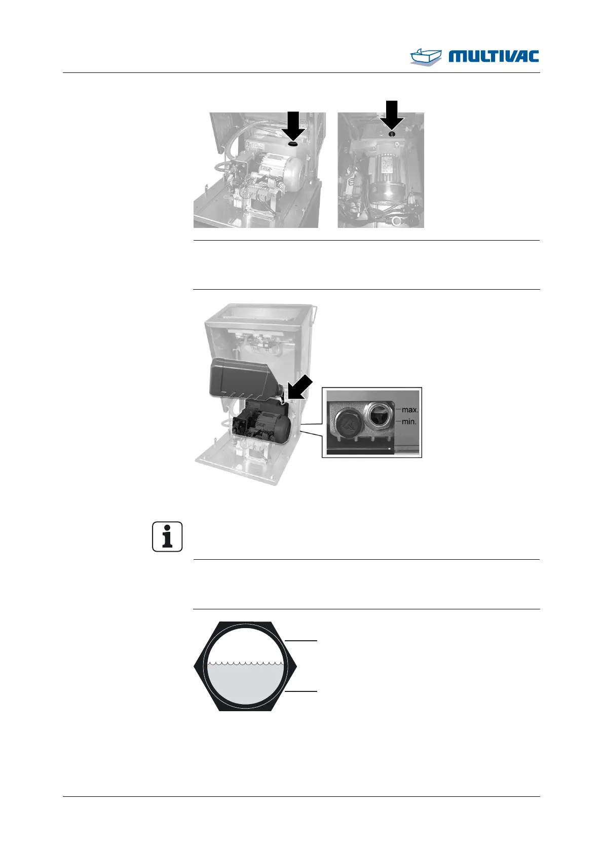 ¾ Fill the vacuum pump with oil up to the middle of the oil sight