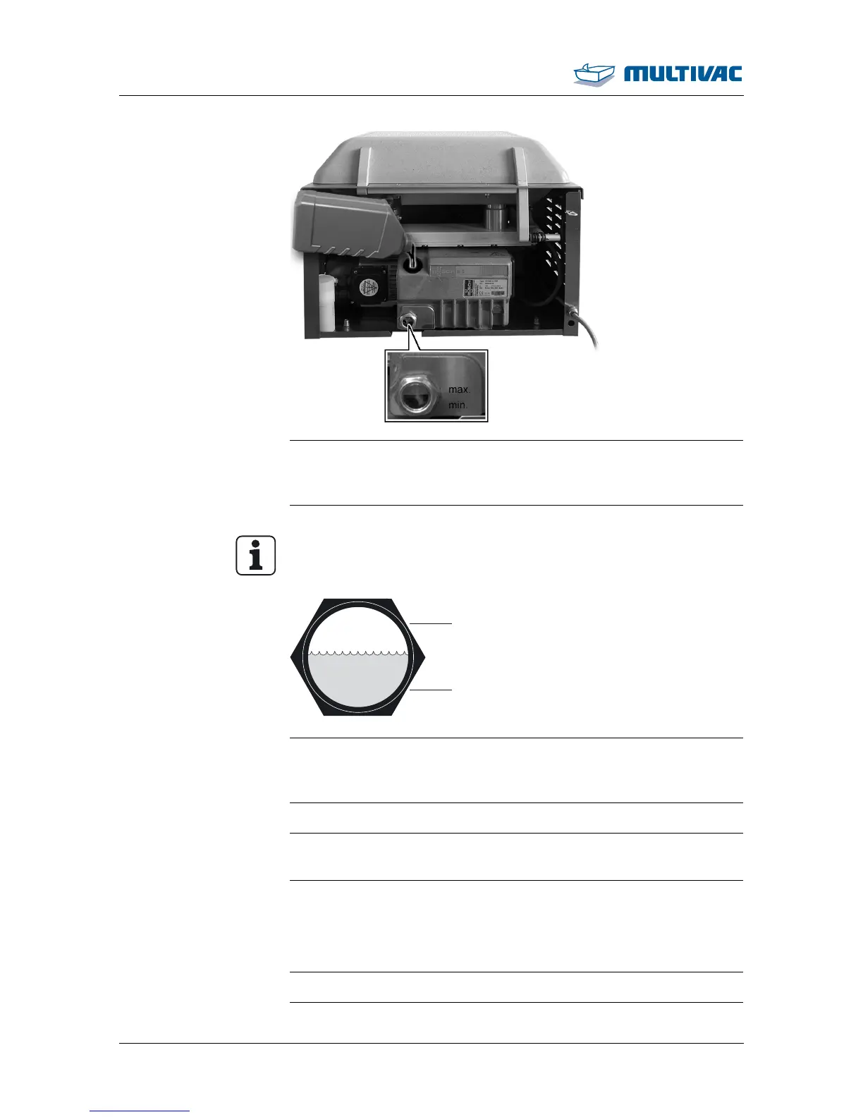 ¾ Fill the vacuum pump with oil up to the middle of the oil sight