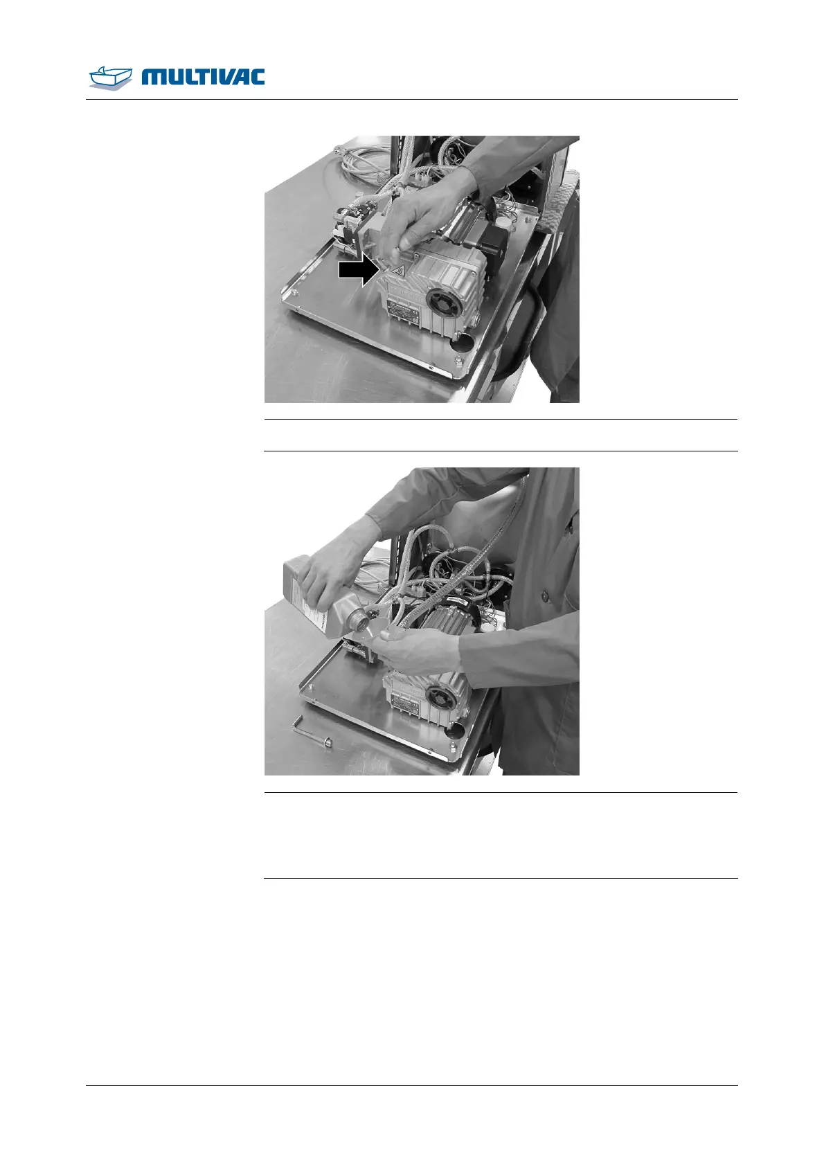 ¾ Fill the vacuum pump with the oil supplied up to the middle of the