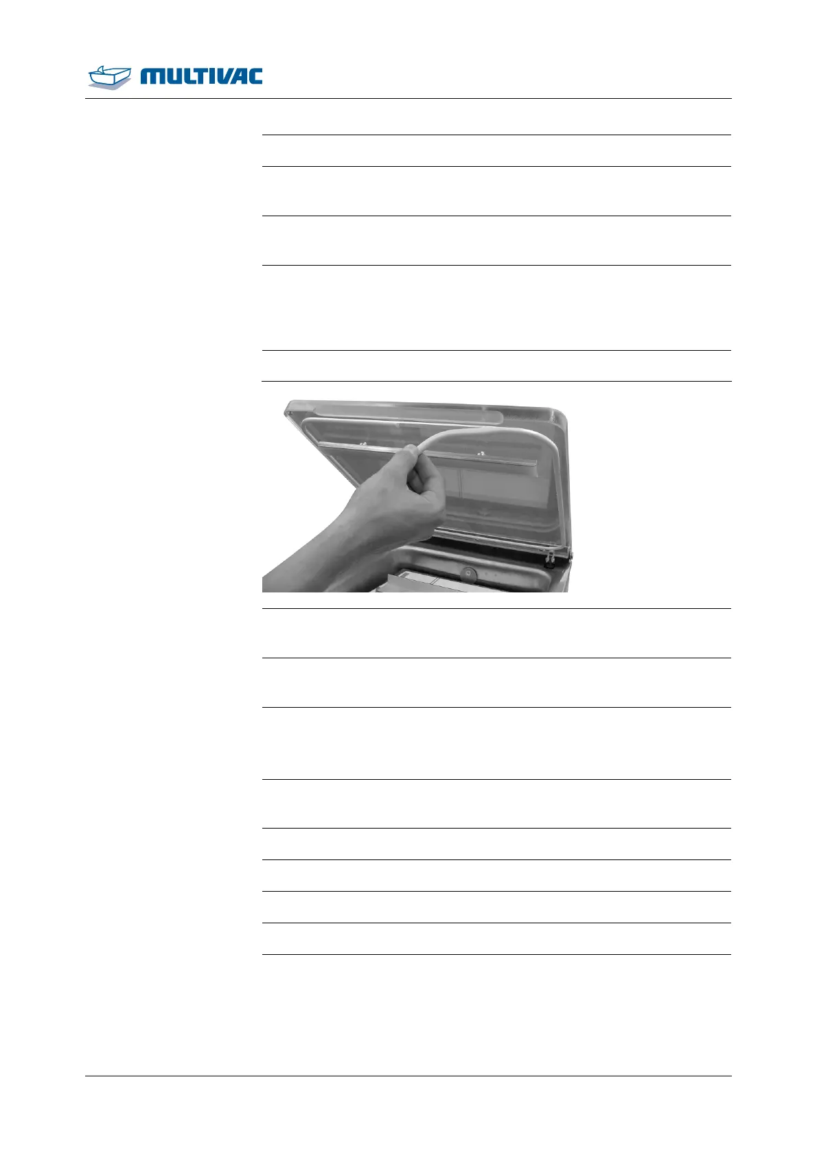 ¾ Only clean the Teflon tape of the sealing bar manually with a