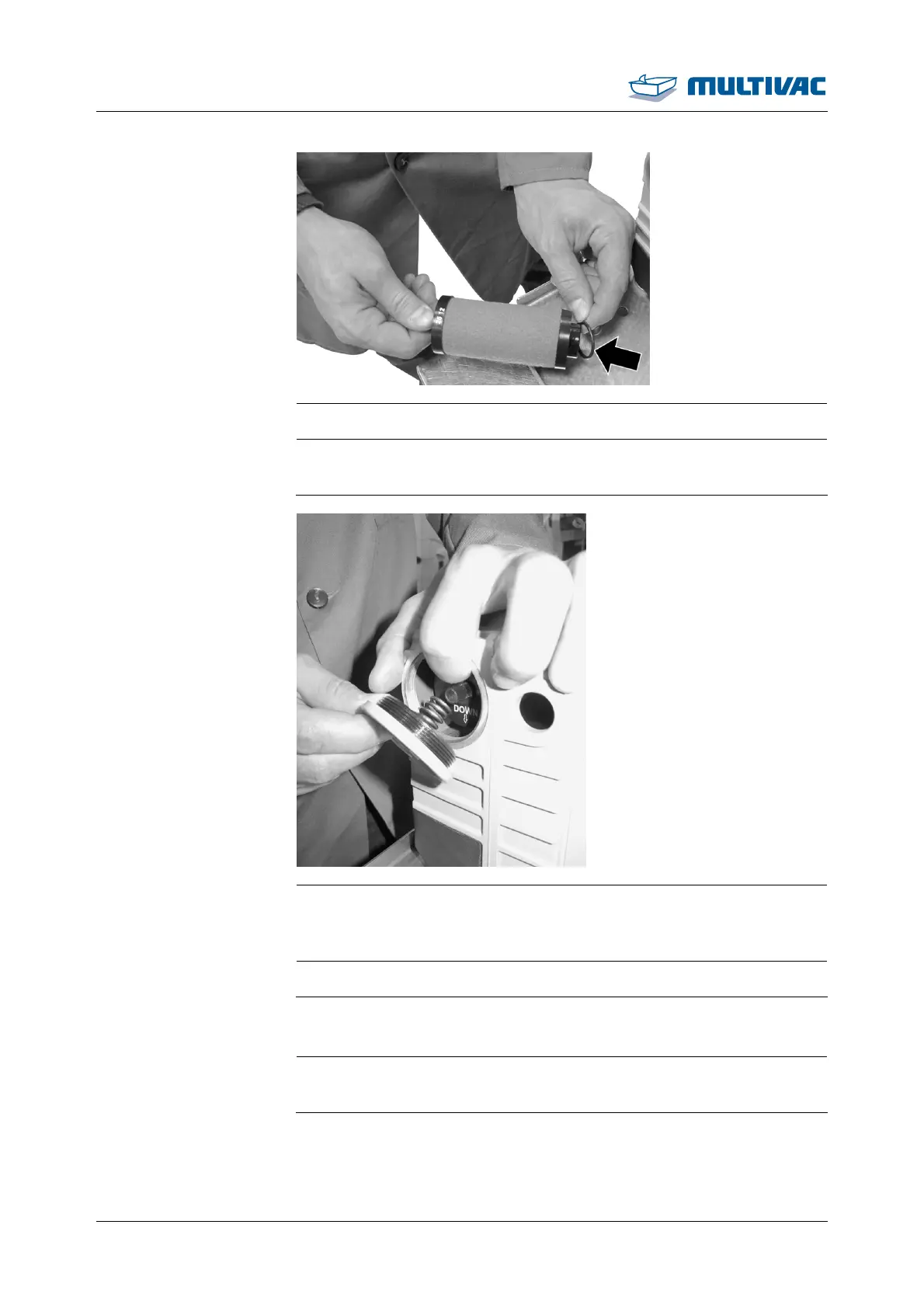 ¾ Insert a new air de-oiling element with sealing ring.
