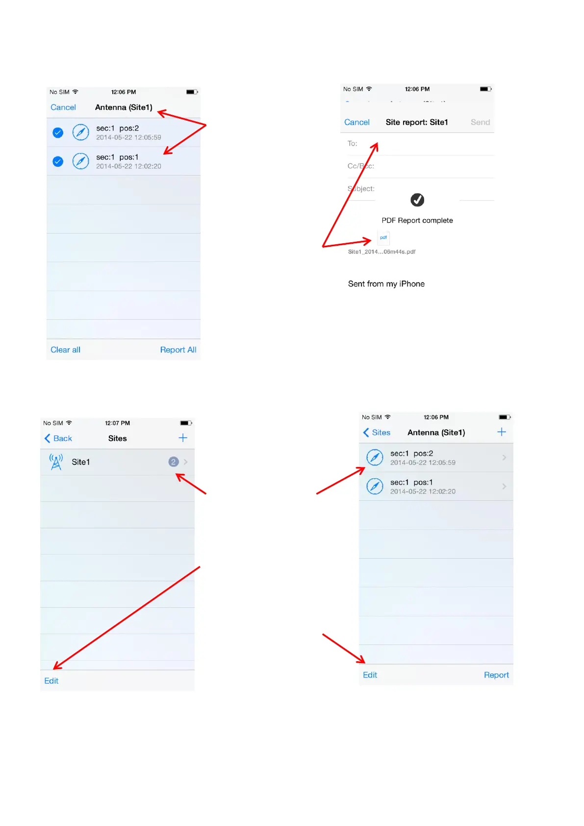 After tapping “Report”, “Select all” in the Antenna list