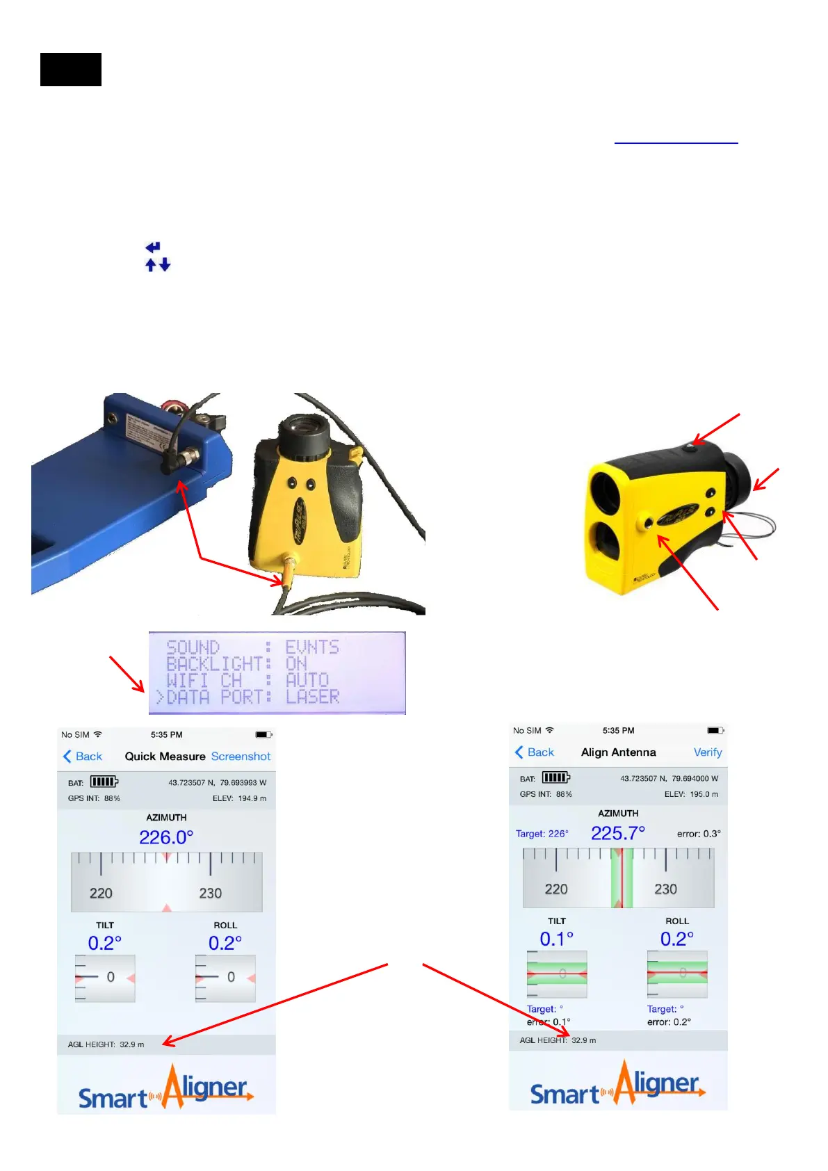 The AGL of the antenna can be measured using Laser Rangefinder and this measurement can flow directly through