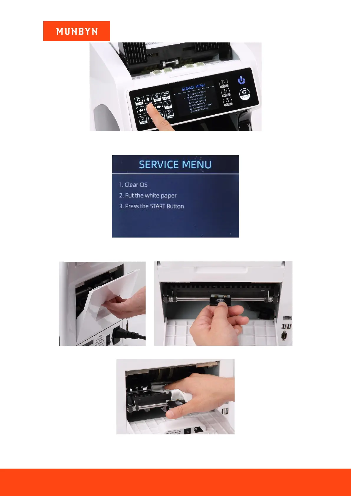 3) Open the back cover to clean the CIS sensors with a lint-free cleaning cloth.