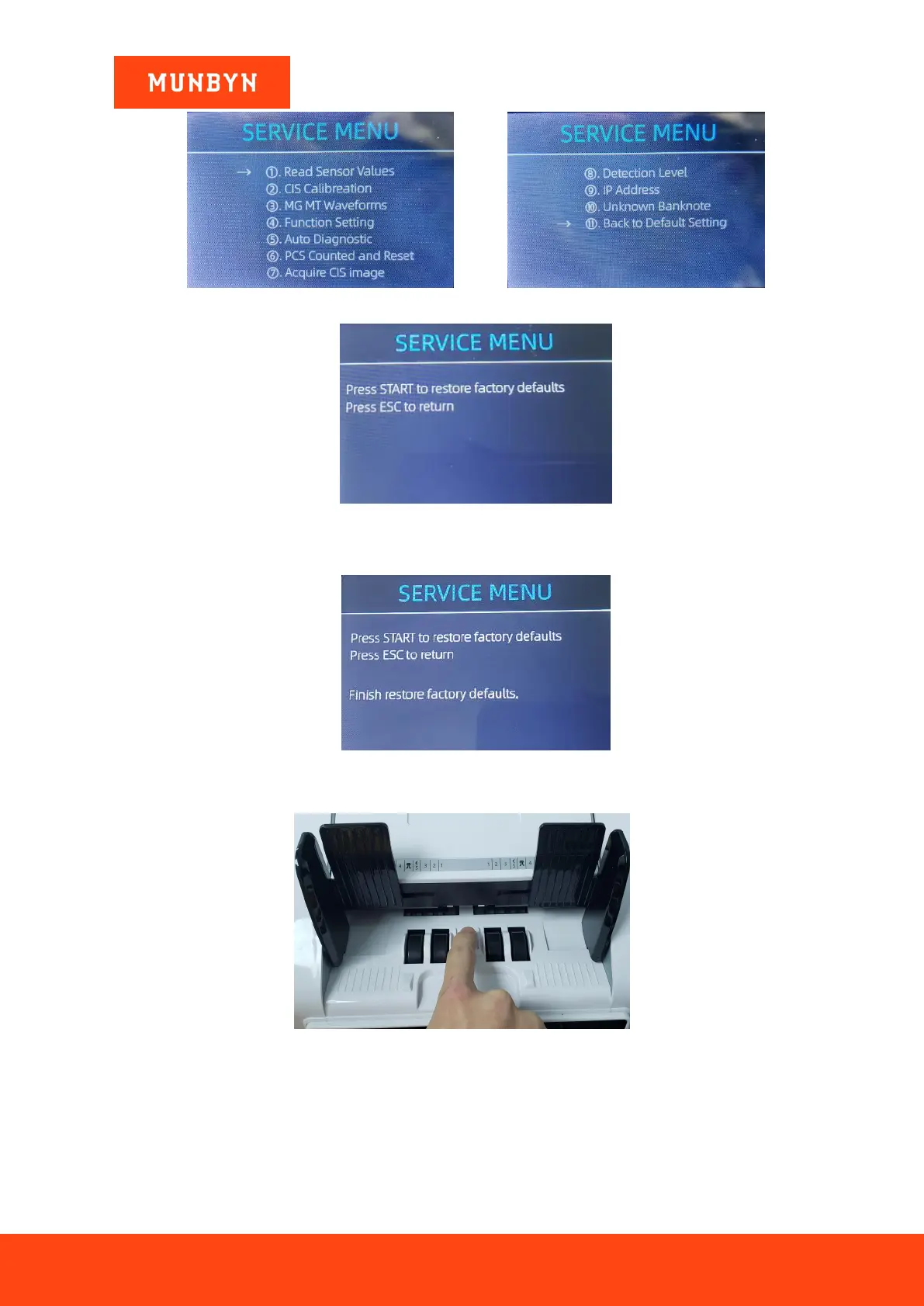 2) After pressing start, the IMC01 will reset all the changed settings beforesettings to factory default.