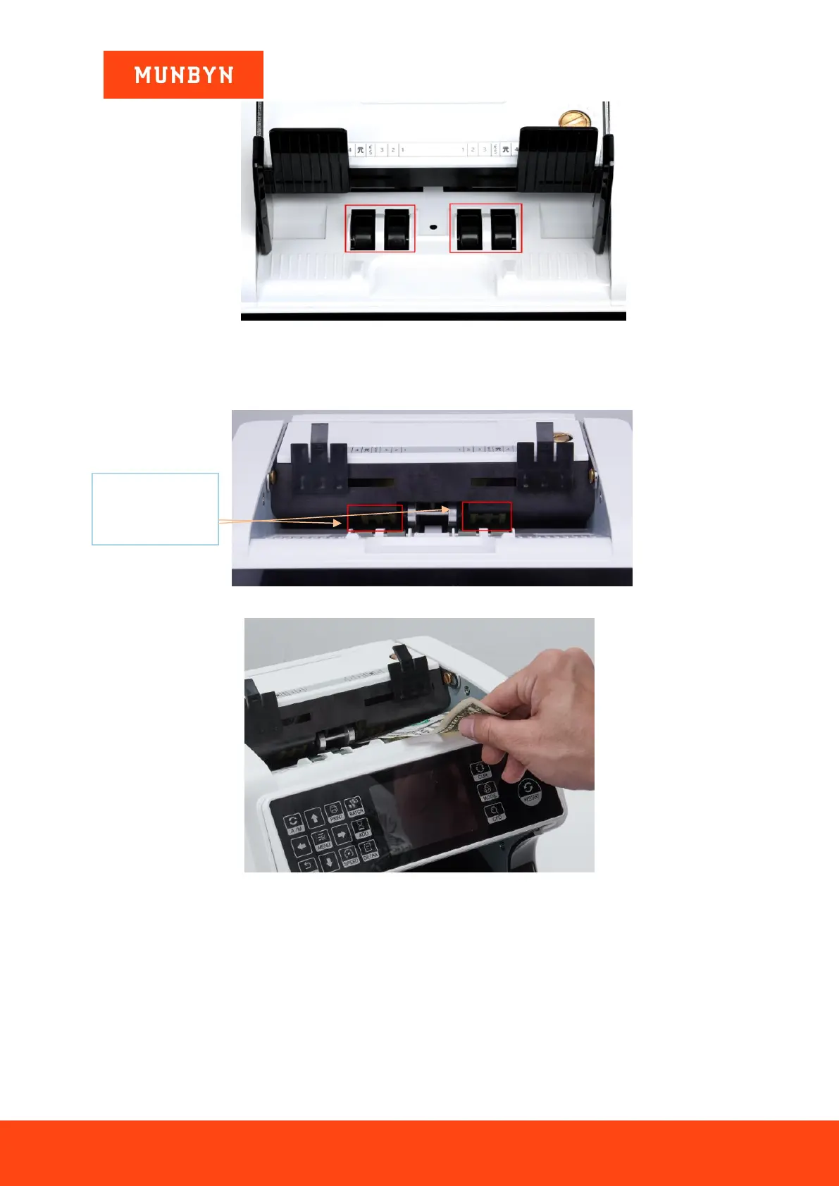 3) Insert one banknote into the gap between the rollers to check if the banknote can be inserted smoothly, as