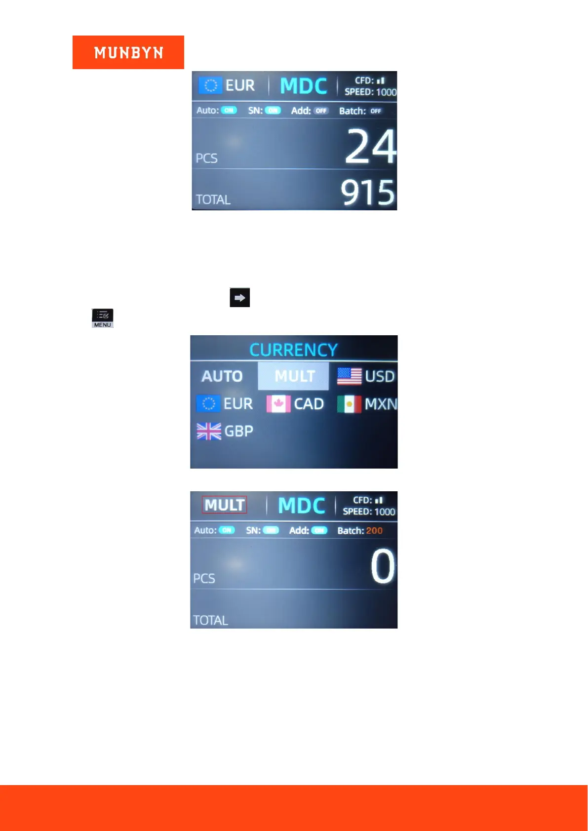 count. The IMC01 can recognize all the first 4 currencies displayed on the currency selection interface.