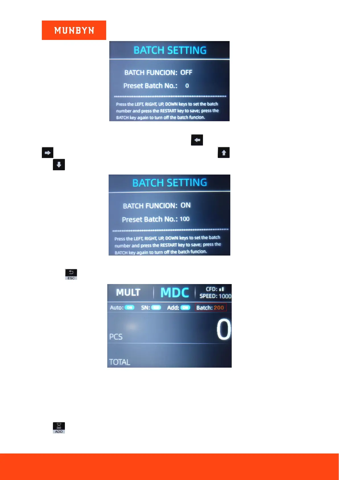 The batch number will be increased by 10 by pressing the key , or decreased by 10 by pressing the key