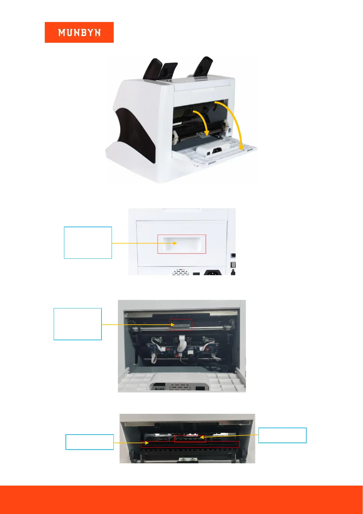3) Clean the lower CIS and Lower UV sensors with cleaning cloth or nylon brush respectively.