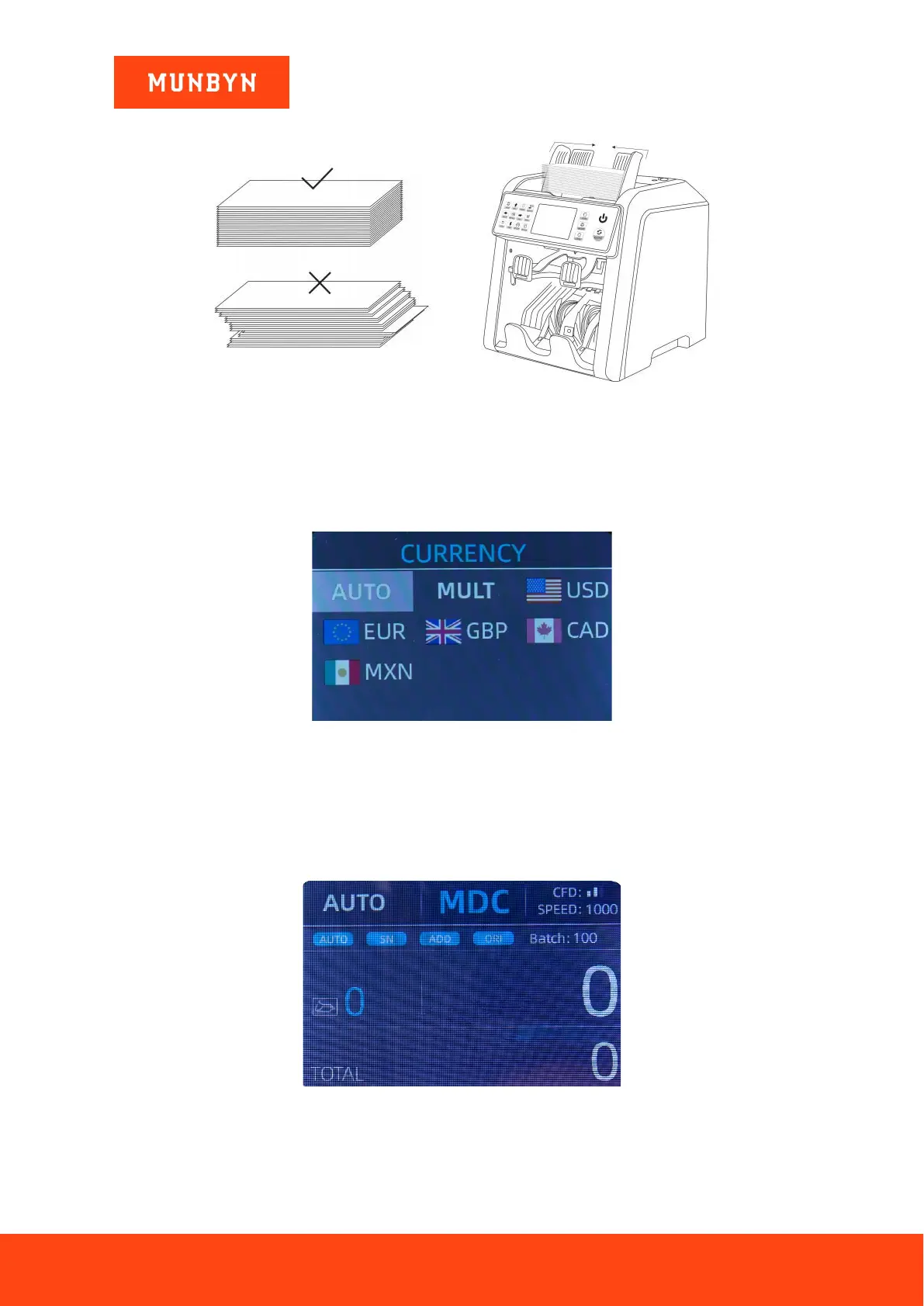 Example: Use a handful of USD bills into the IMC08 hopper to count. The interface of the IMC08 displays