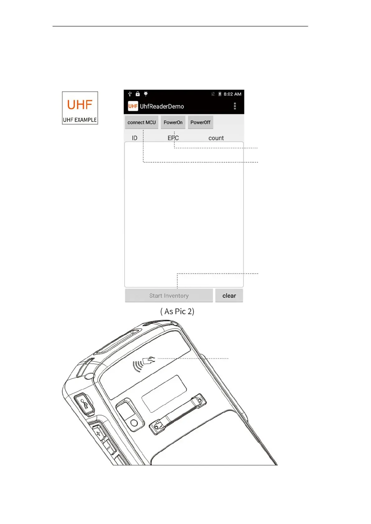 If your PDA is equipped with the function of UHF RFID, you can test the NHF