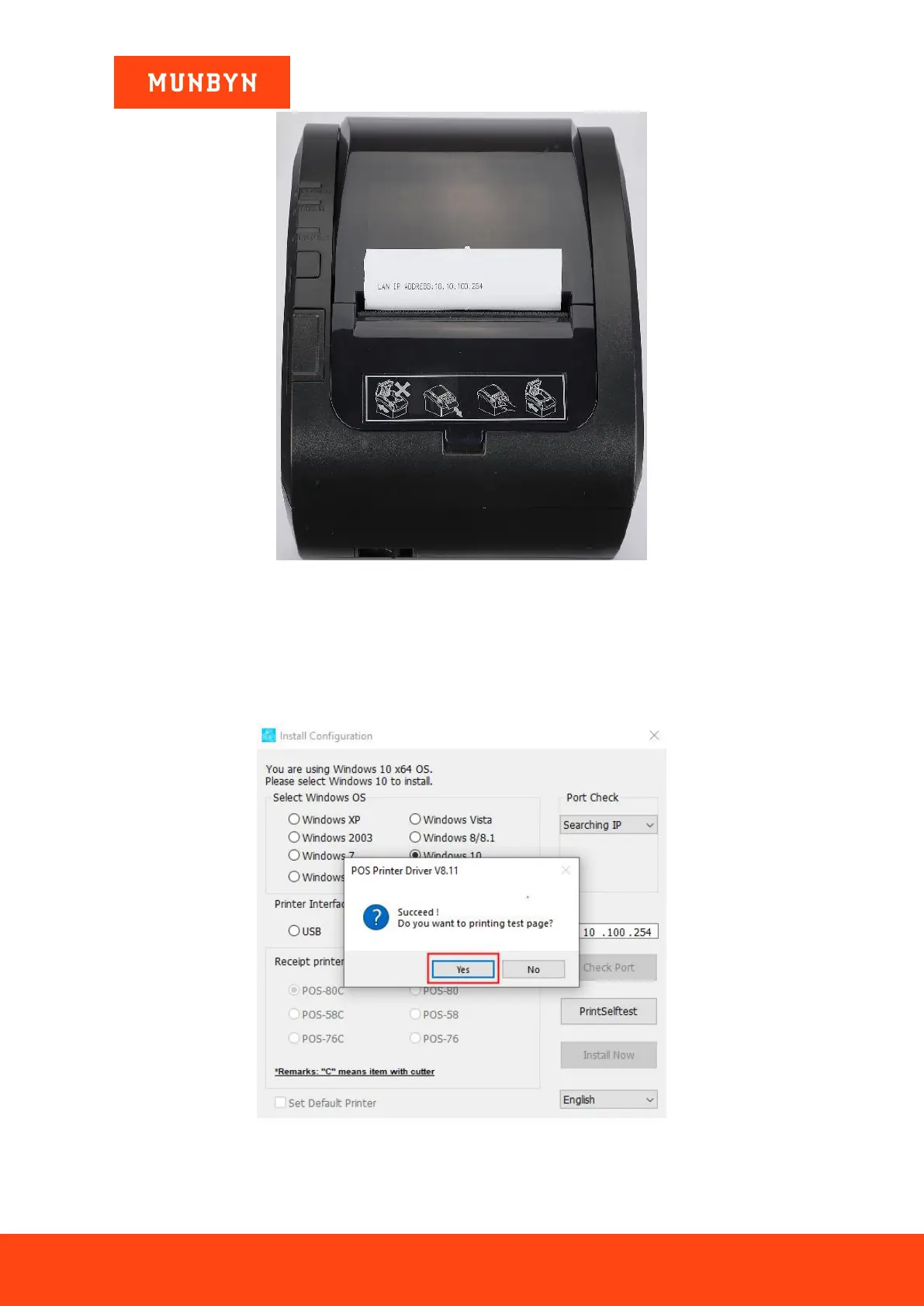 4) The driver will automatically pop up a small window. Click "Yes", the printer will print out a "POS Printer"