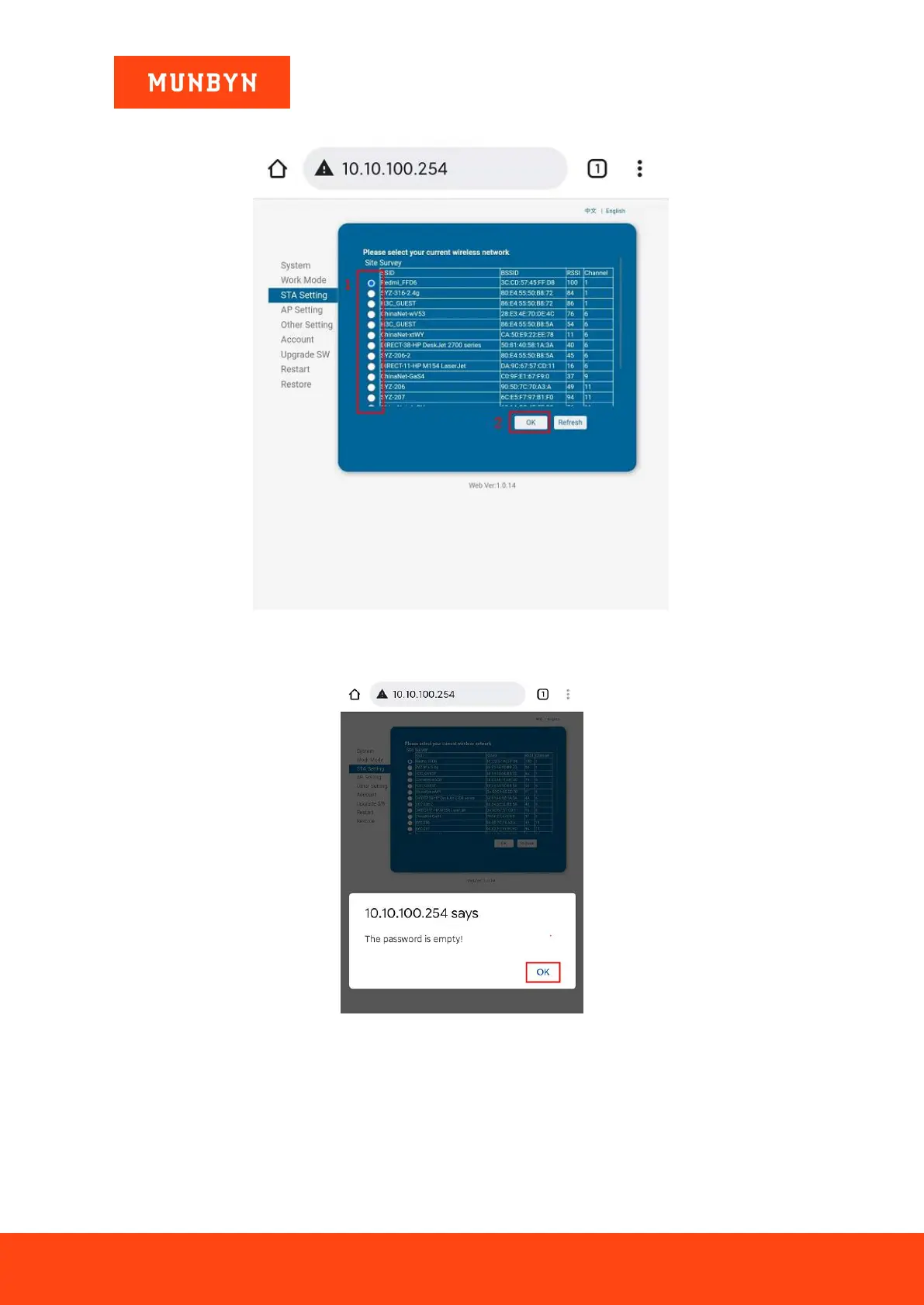 8) Automatically jump to the "STA Setting" interface. Enter the password for the wireless network of your