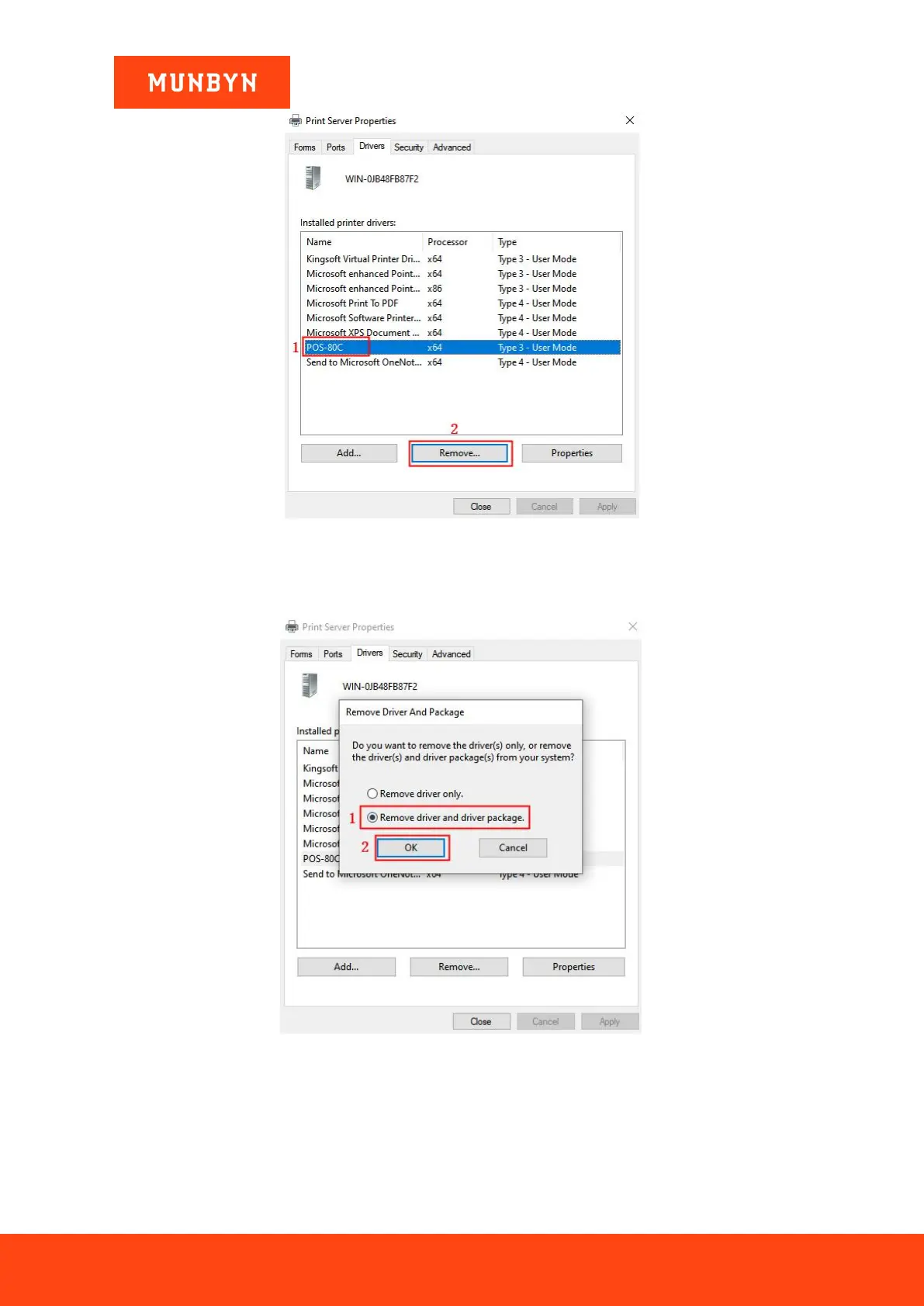 3) Select "Remove driver and driver package", then click "OK".