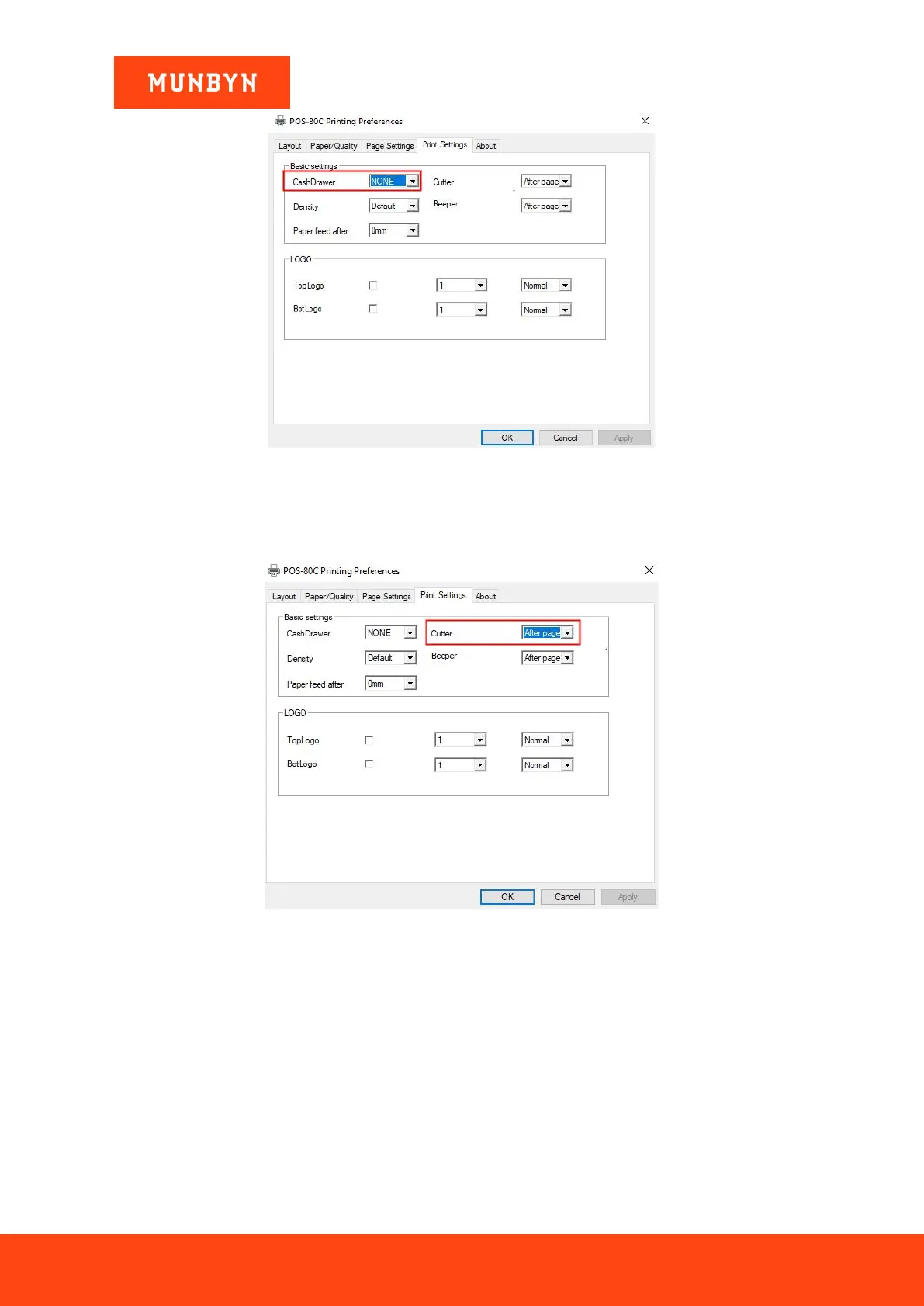 MUNBYN ITPP047 - Cutter Selection; Printing Density