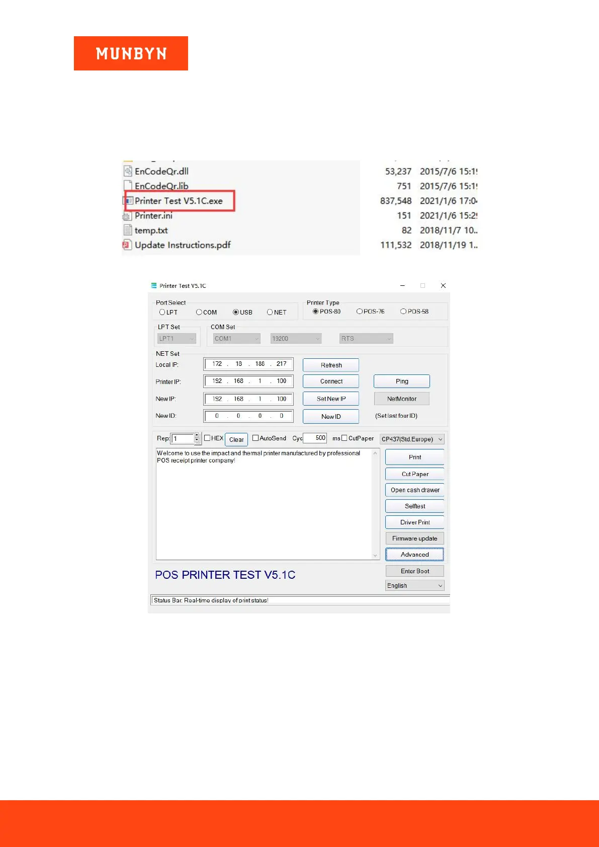 1) Unzip the file and click "Driver CD" → "Tools" → "Printer Test V5.1C.exe".