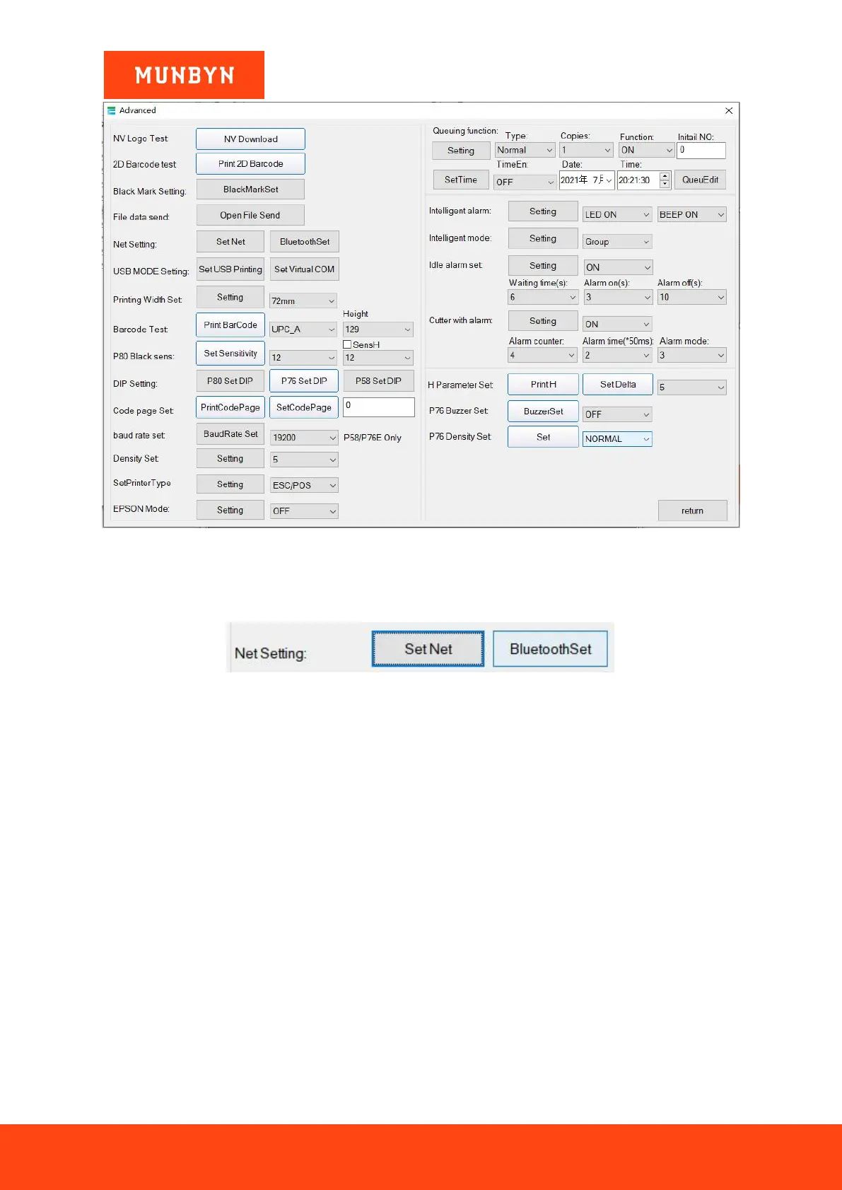 It includes "Net Setting" and "Bluetooth Setting".