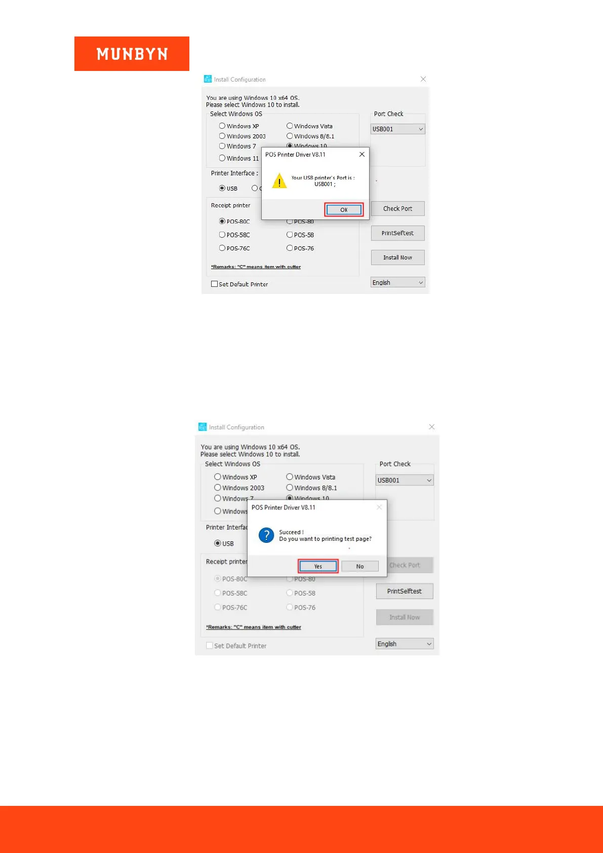 4) The driver will automatically pop up a small window. Click "Yes", the printer will print out a "POS Printer"