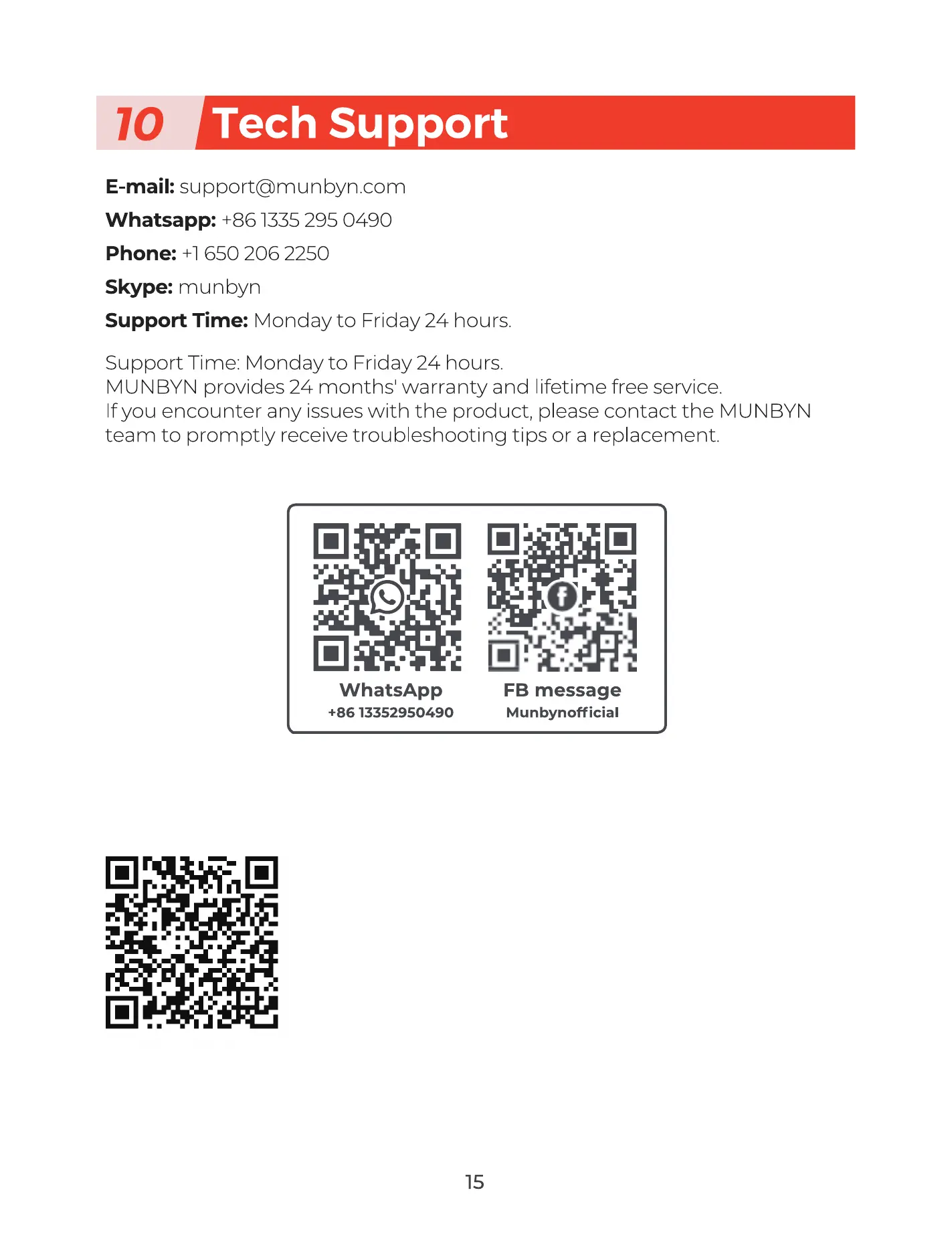 MUNBY N provides 24 monthsl warranty and lifetime free service.
