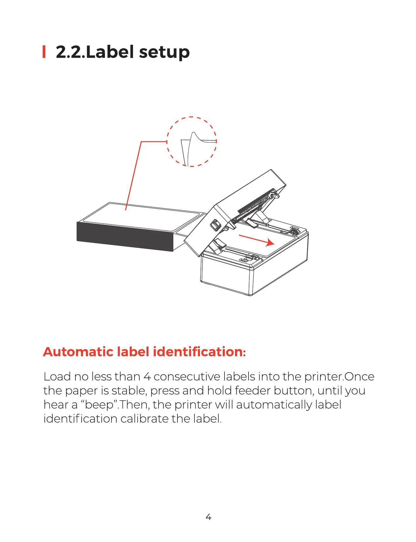 Load no less than 4 consecutive labels into the printer.Once