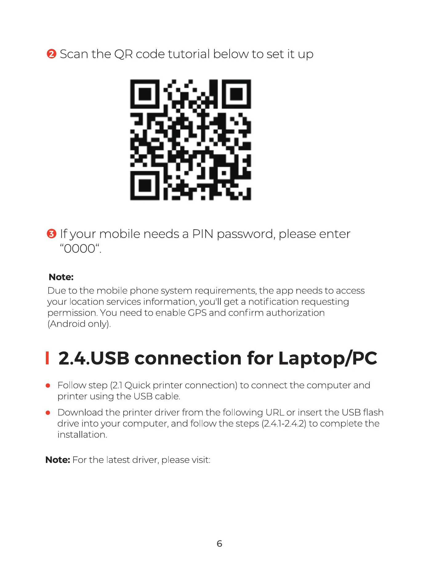 Follow step (2.1Quick printer connection) to connect the computer and