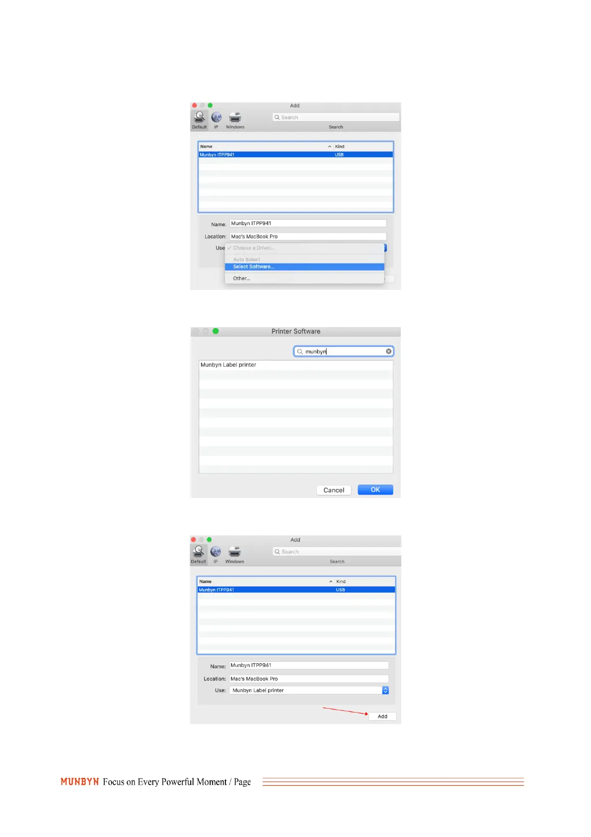 7. Please search / find "Munbyn Label Printer" and click OK.