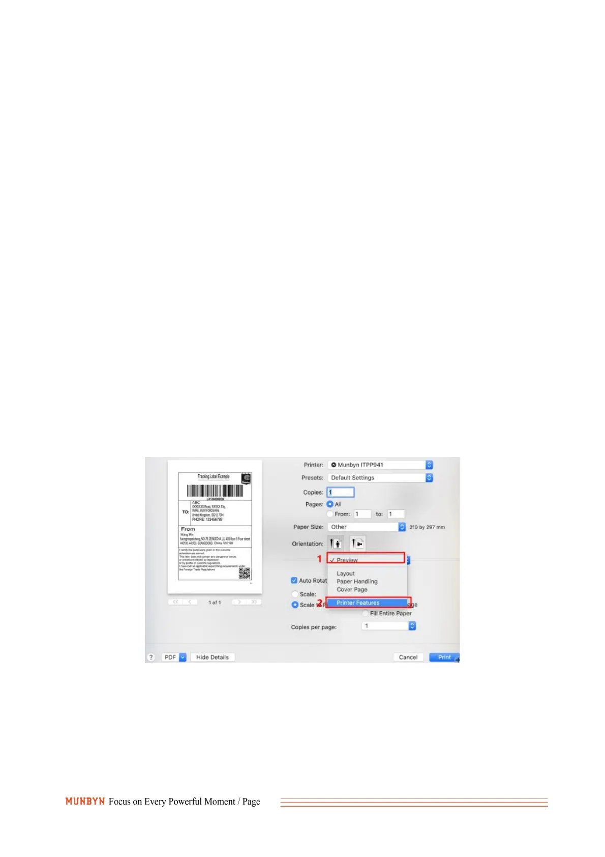 1).Choose printer features.