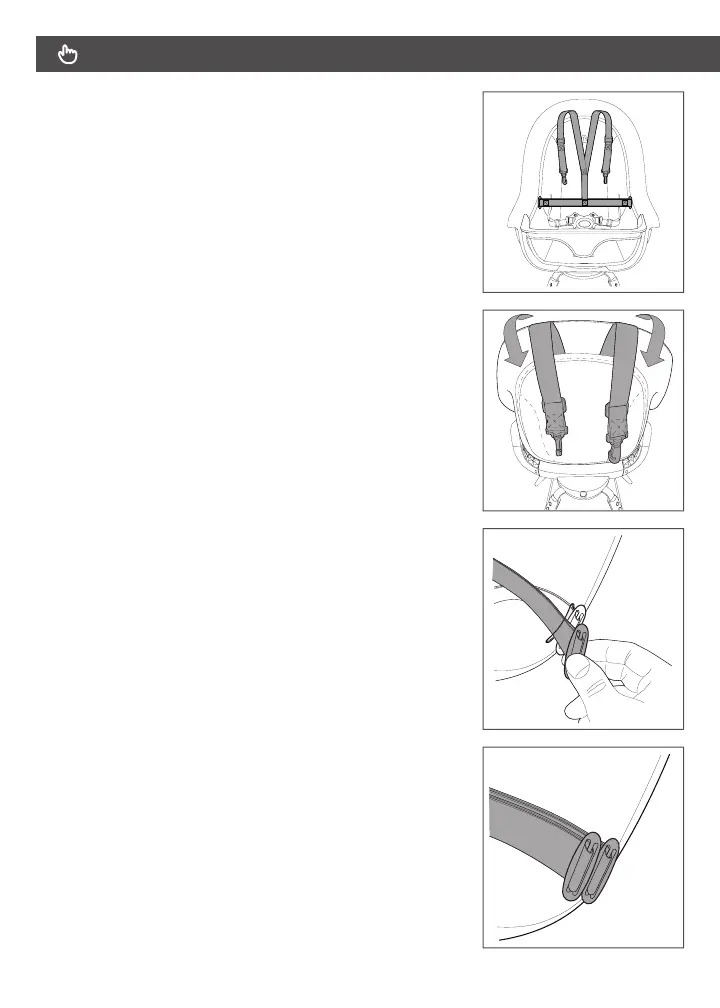 D. Posez le harnais supérieur sur le siège. Le harnais