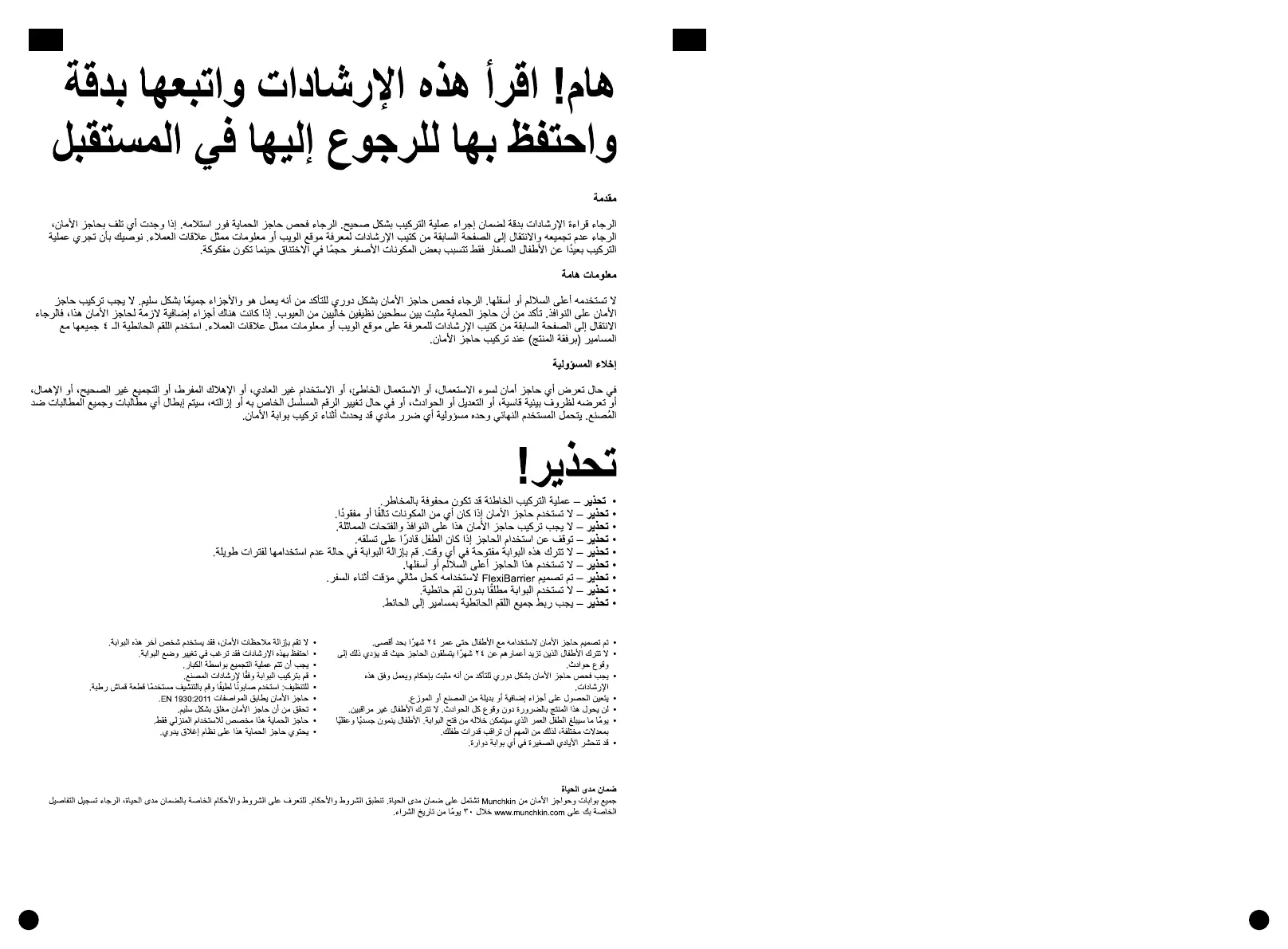 Na všechny bezpečnostní zábrany Munchkin se vztahuje záruka po celou dobu životnosti. Platí uvedené podmínky. Do 30 dnů zaregistrujte své údaje na stránkách