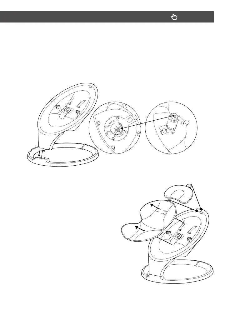 1. Agganciare il telaio del sedile facendolo scorrere sul montante di supporto della base.