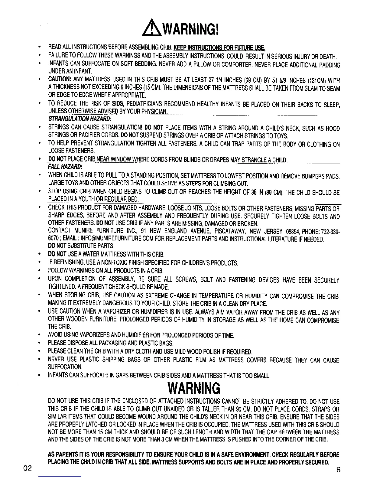 Munire 4499 - General Safety Warnings; Strangulation Hazard Precautions; Fall Hazard Precautions