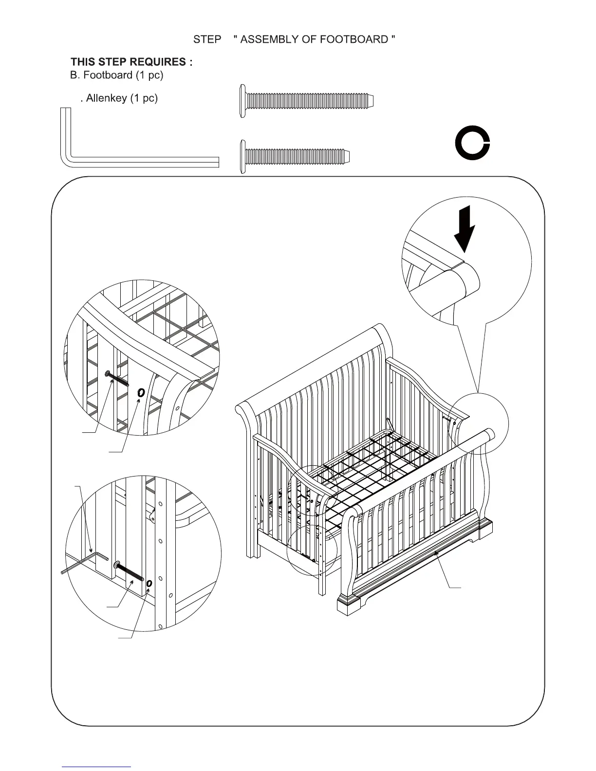 into the threaded holes footboard (B).