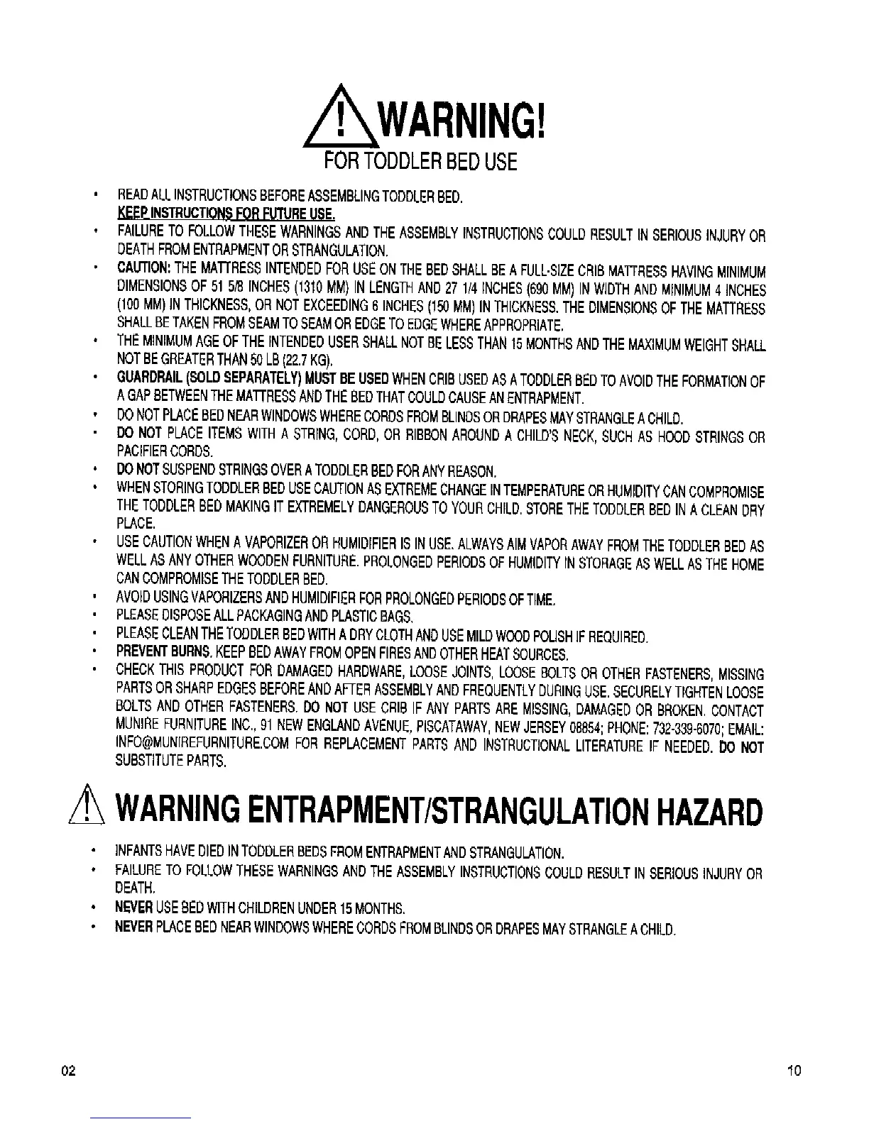 Munire Savannah - Toddler Bed Specific Safety Warnings