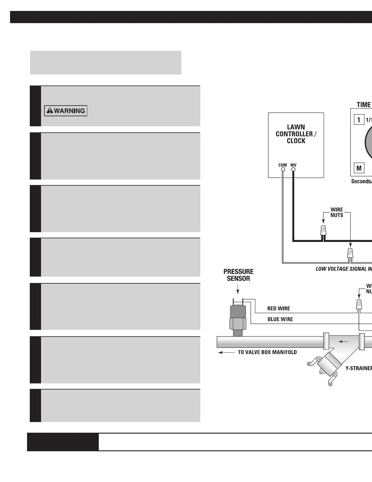 • Locate the Master Valve (MV) and Common (COM) inside Lawn Controller.