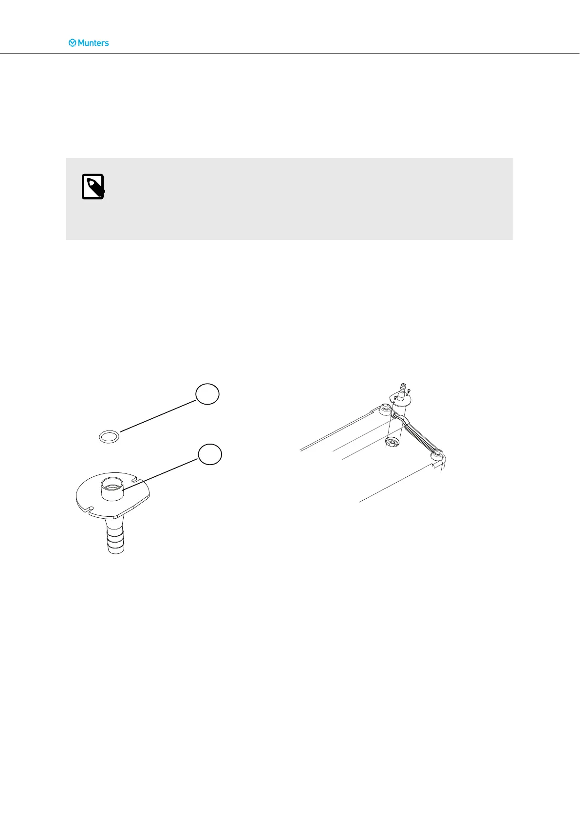 6. Insert the O-ring (1) in to the drain pipe sleeve (2). Press the O-ring so it is properly seated in the
