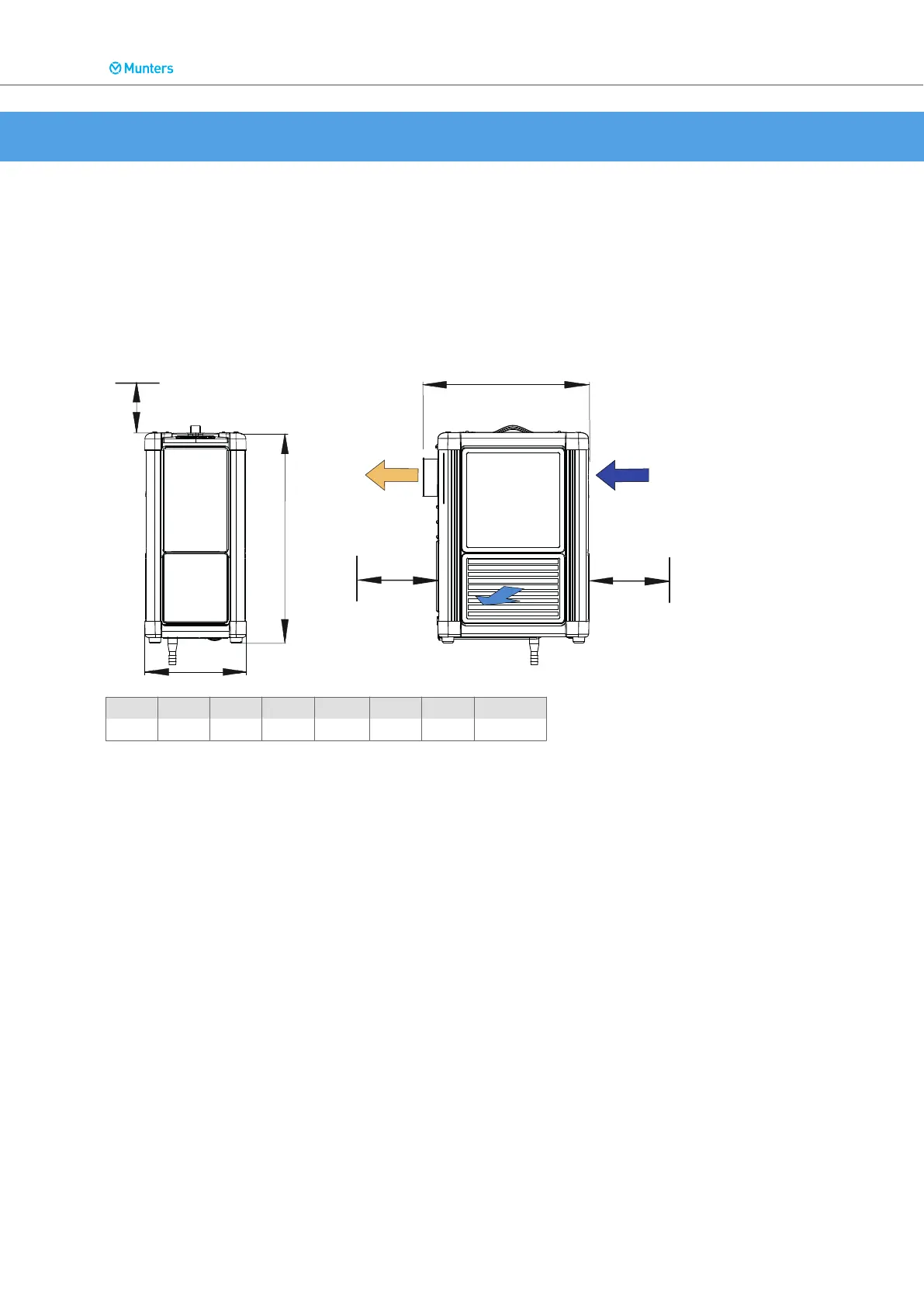 Munters ComDry M160L - Technical Specification; Dimensions and Service Space