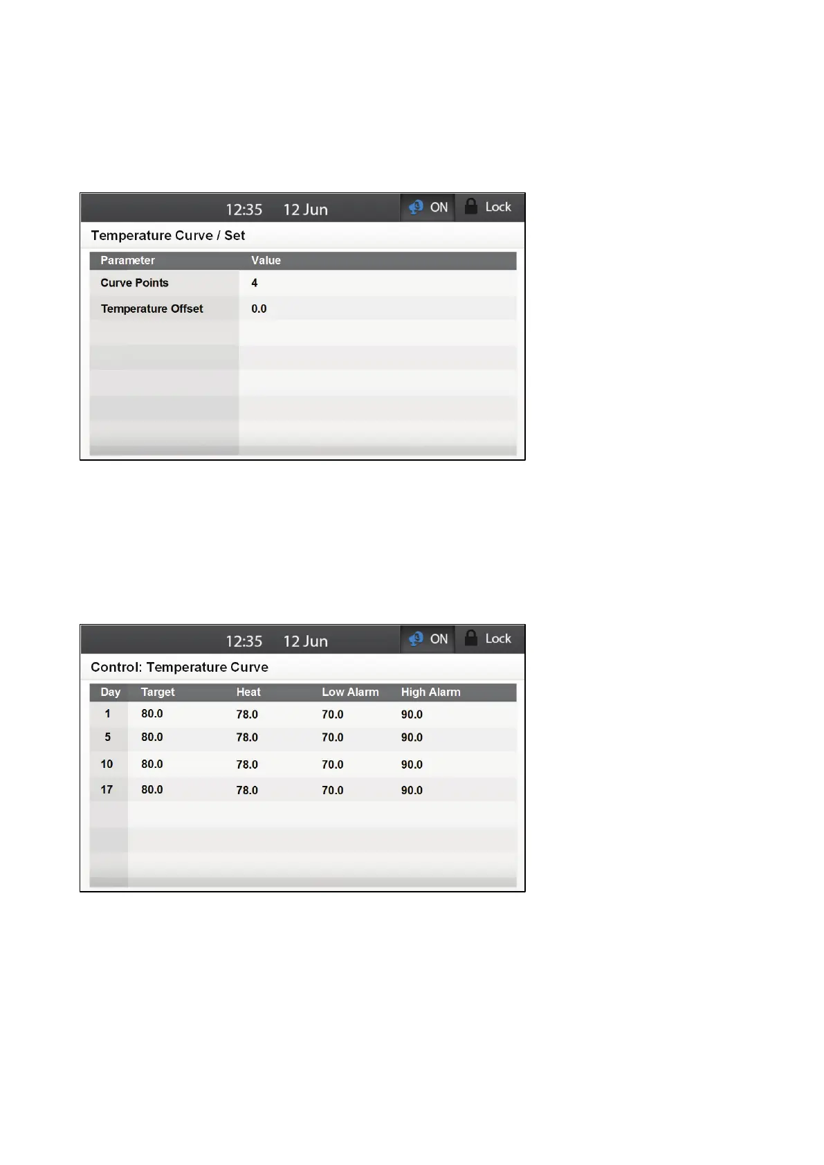 1. Go to Control > Temperature Curve > Set.