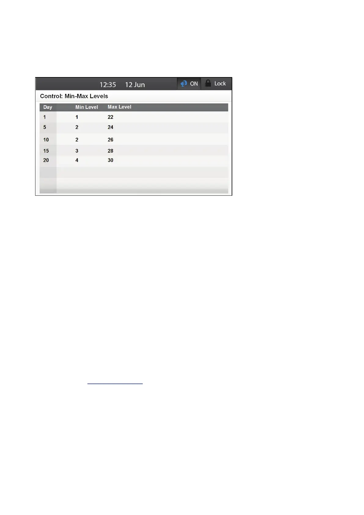 o Minimum Level: Set the controller's minimum ventilation level starting at that day.