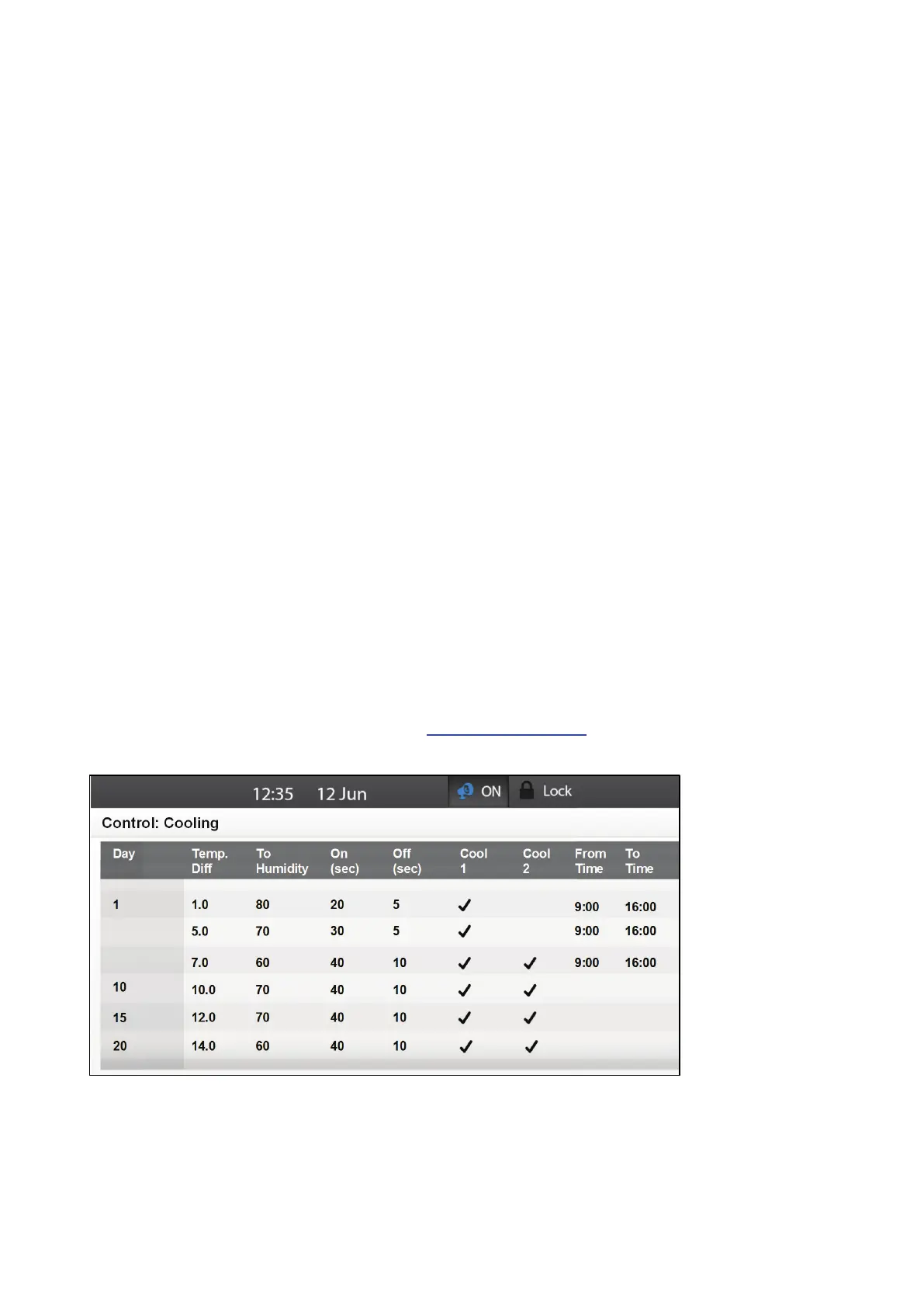 If the humidity level rises above the To Humidity parameter (plus the Humidity Band ), cooling