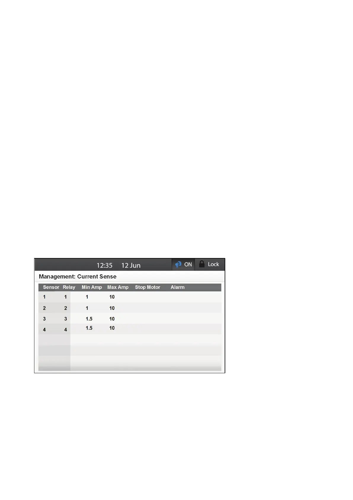 Alarm: Send an alarm if the current exceeds the levels defined in Min/Max Amp.