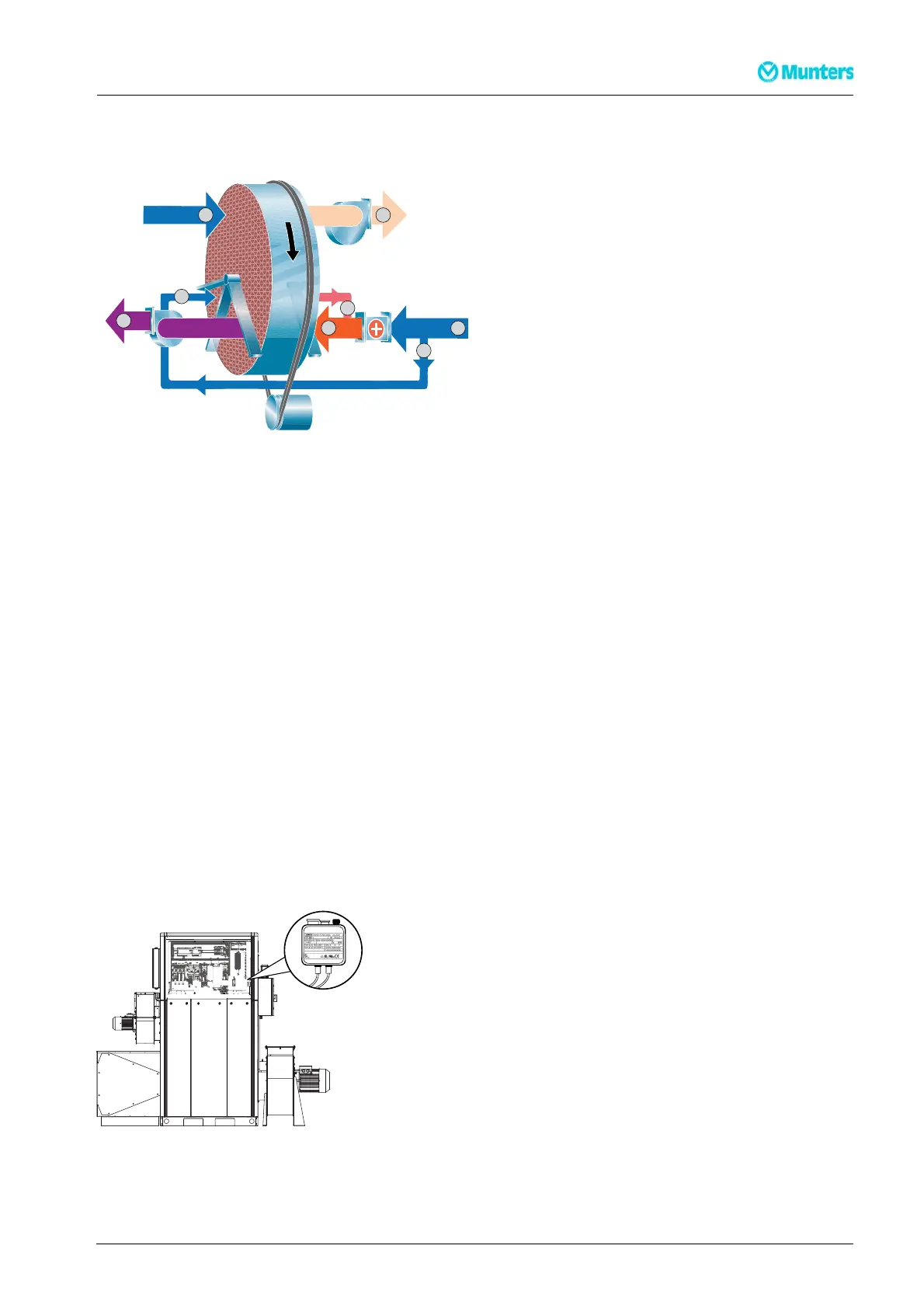 is heated up by the rotor and then mixed with the reactivation airflow, after the reactivation heater. The