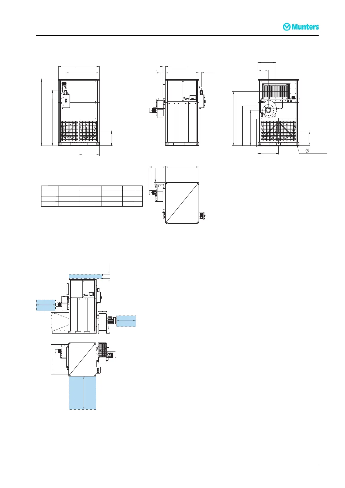 Munters MCD100E - Dimensions for Units Without Process Fan; Service Space