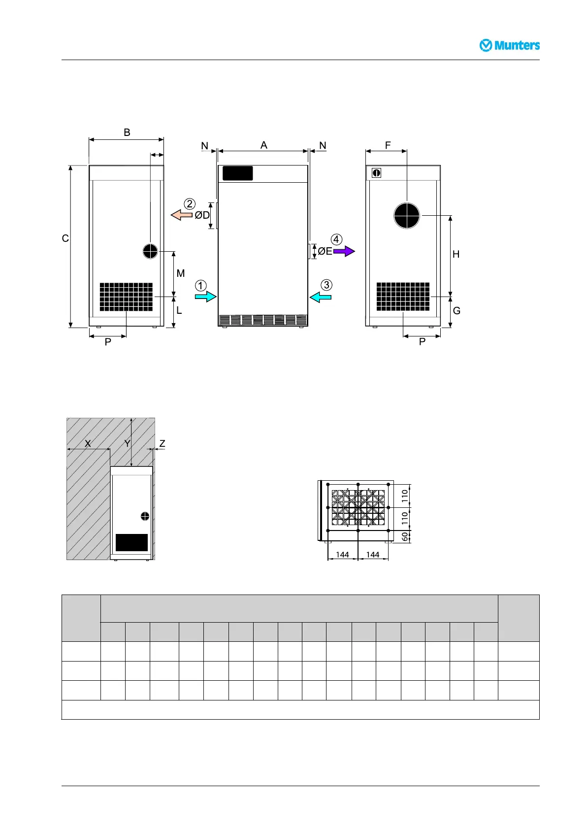 Figure9.1Requiredservicespace Figure9.2Holepatternforductconnection