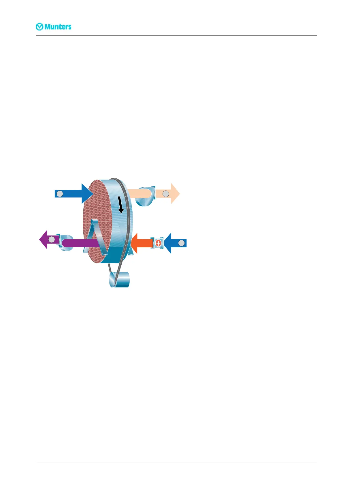 the rotor in the opposite direction to the process air and leaves the rotor a s wet air (warm, moist air). This
