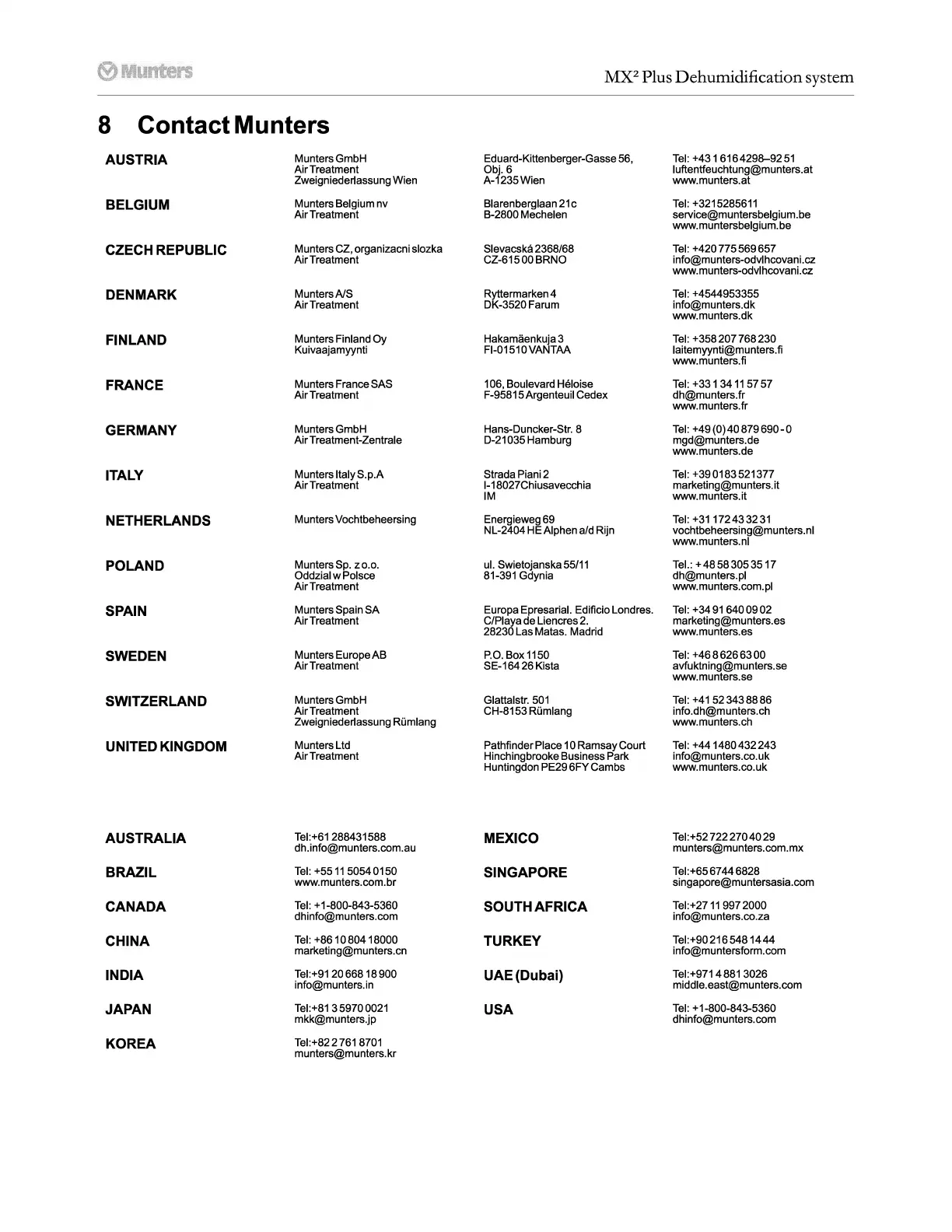 8 Contact Munters