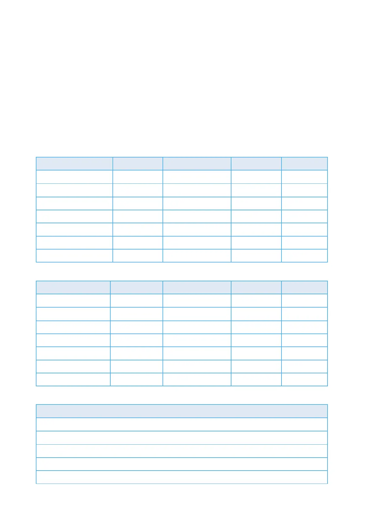 The following tables summarize the features parameters.
